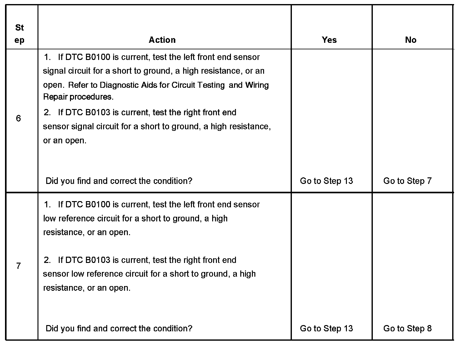 6. Tests for a short to ground, a high resistance, or an open in the front end sensor signal circuit.