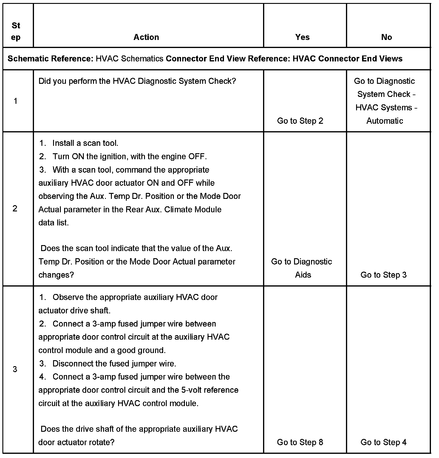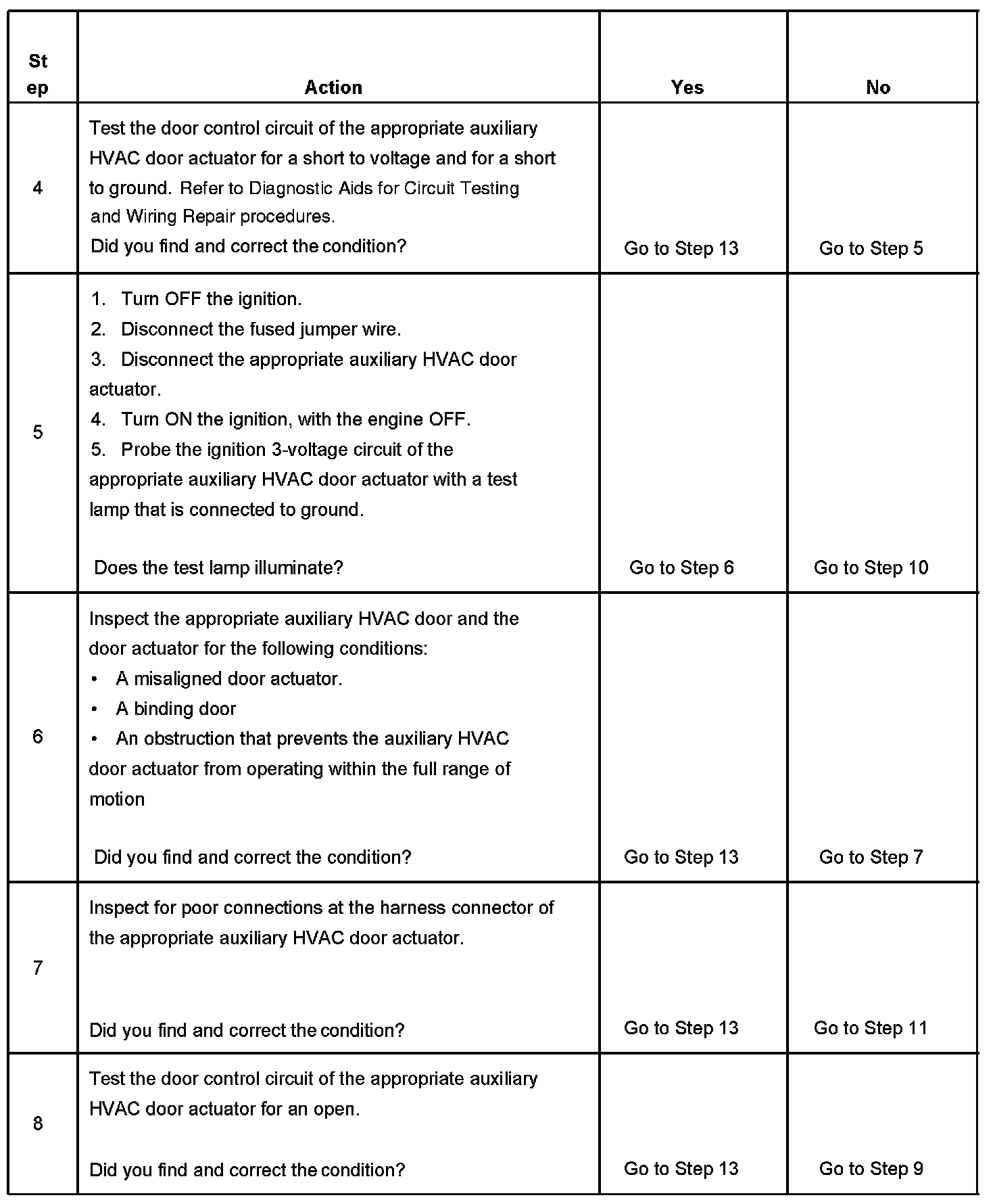 2. Determines if the auxiliary HVAC door actuator is stalled.