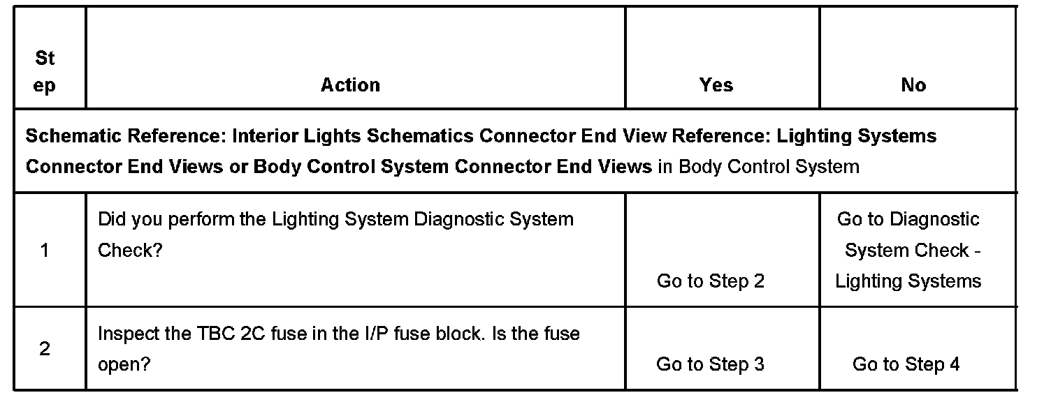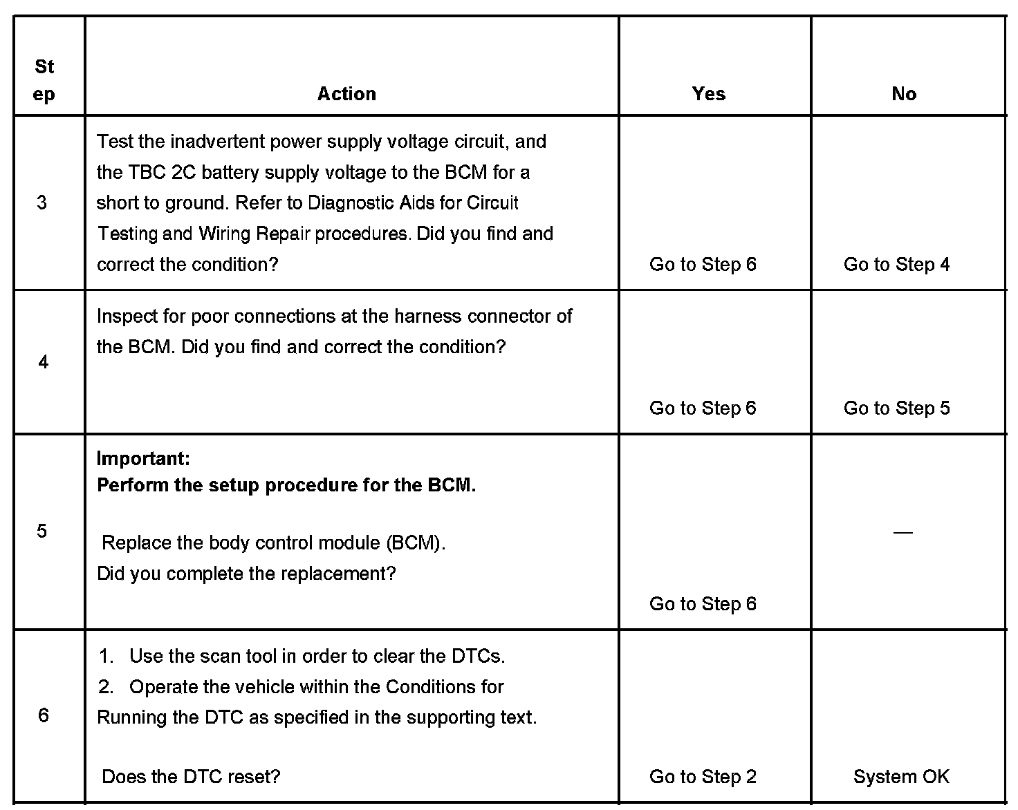 - There is a loss of the instrument panel fuse block TBC 2C battery supply voltage to the BCM for 1 second while one or more of the lamps in the inadvertent power circuit has been activated.