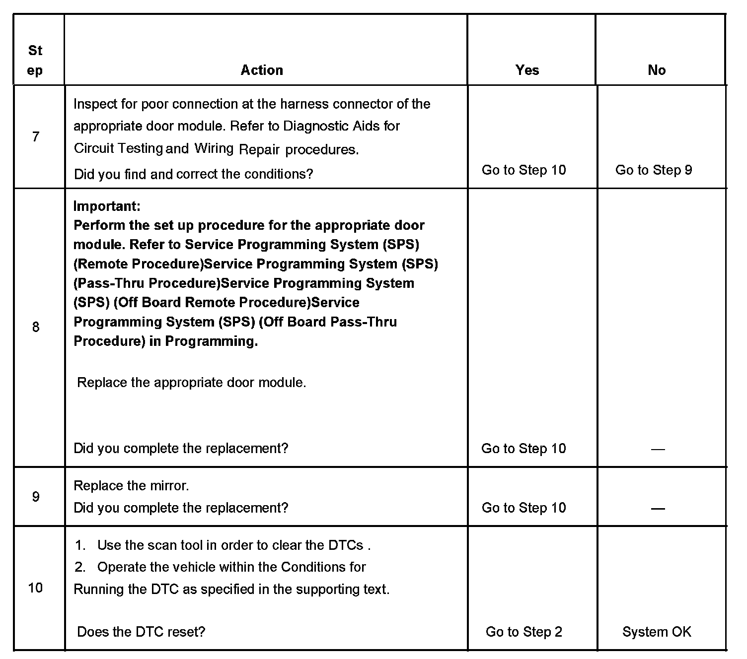 - If the mirror motor control circuits are switched to ground and the mirror motor control circuit is shorted to battery voltage.