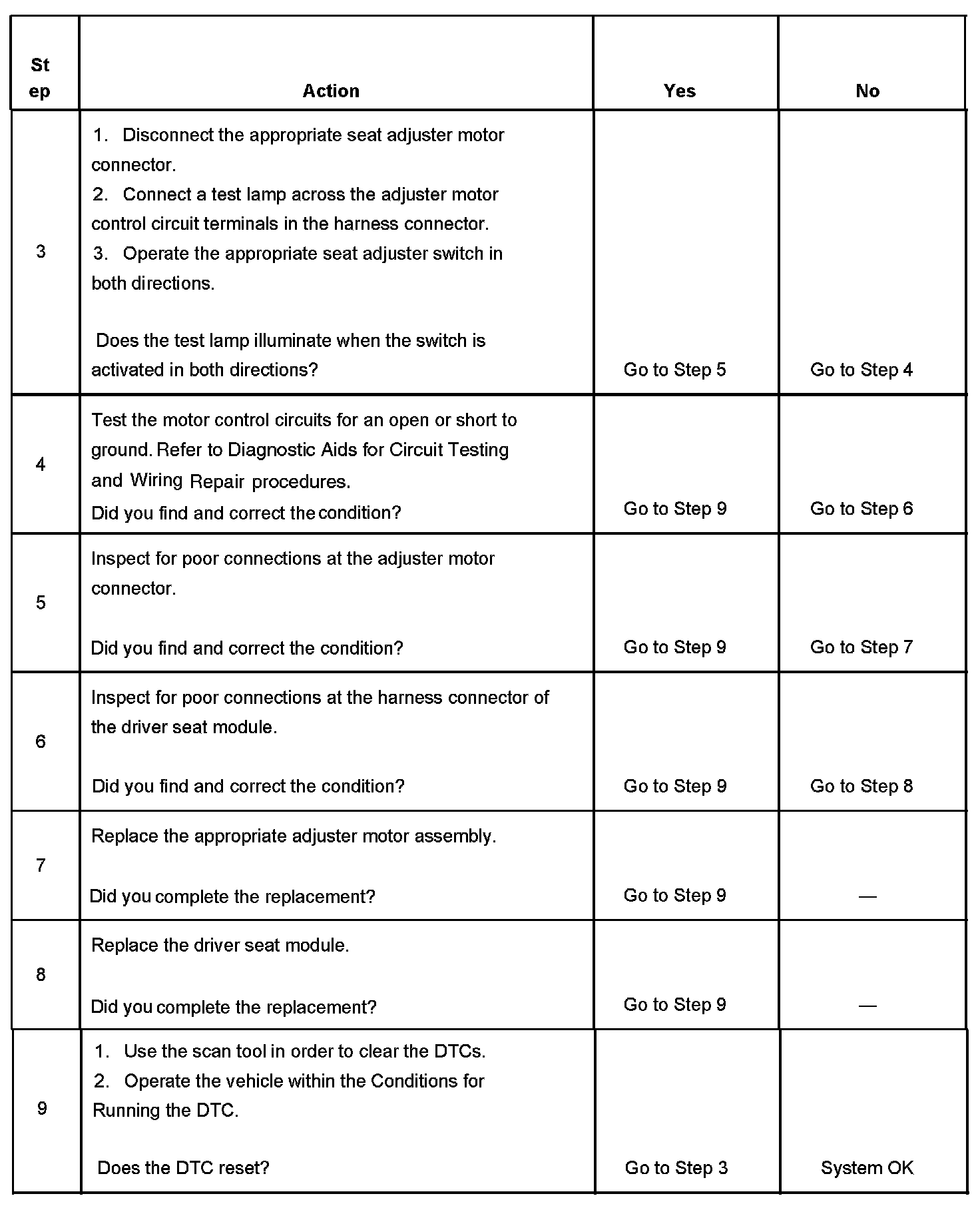 - The seat motor with a current status DTC will be disabled.