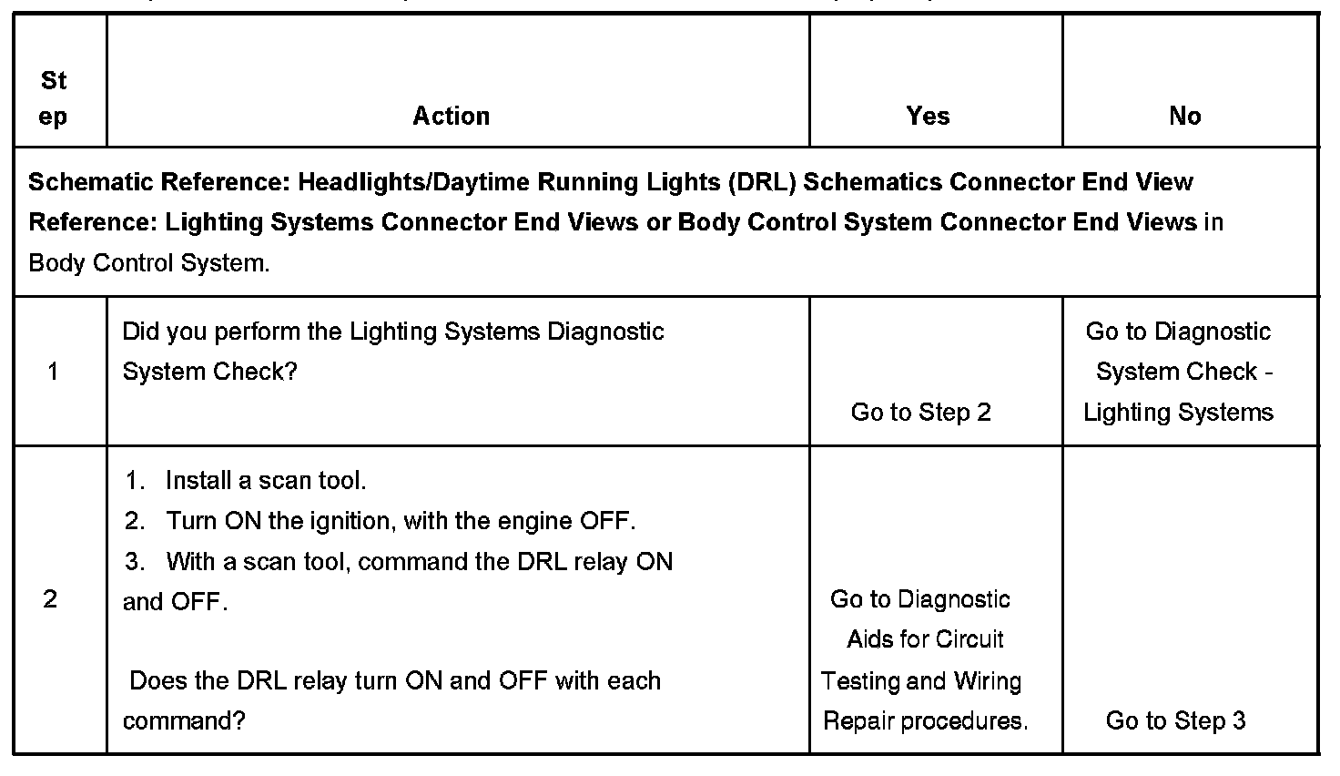 6. Tests if there is opposing voltage present or an open in the DRL relay control circuit.