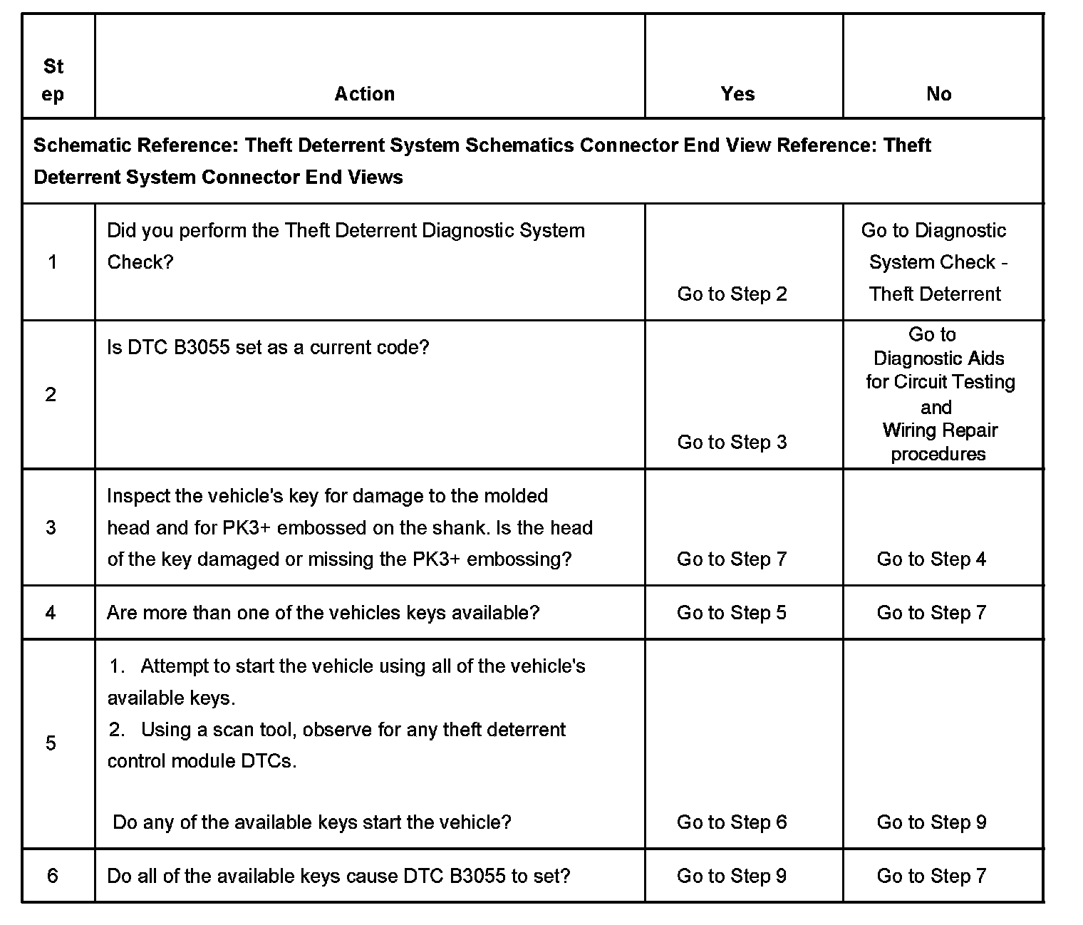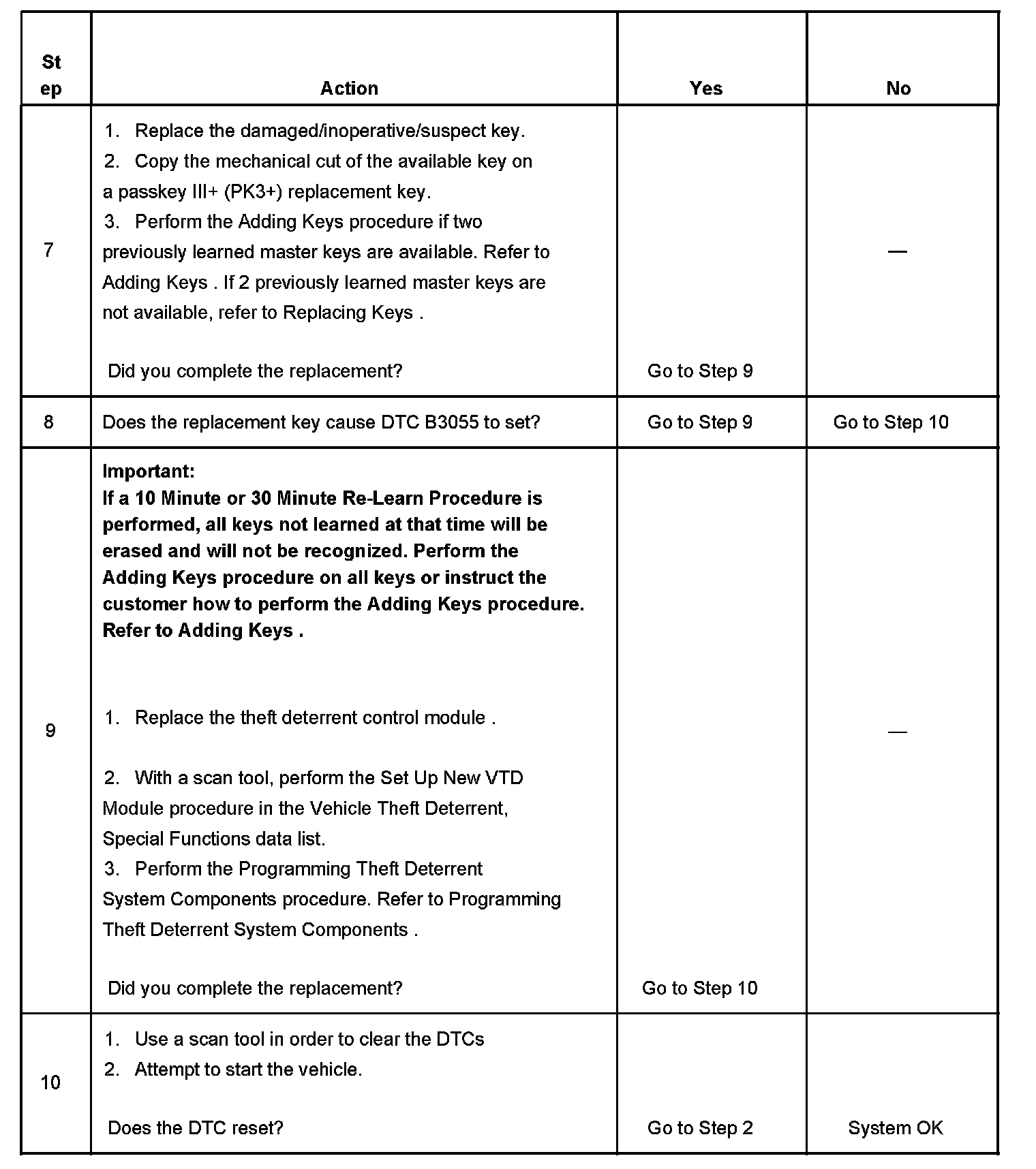 7. If a new key must be tried, the key must have the proper mechanical cut and the theft deterrent control module must "learn" the transponder value.