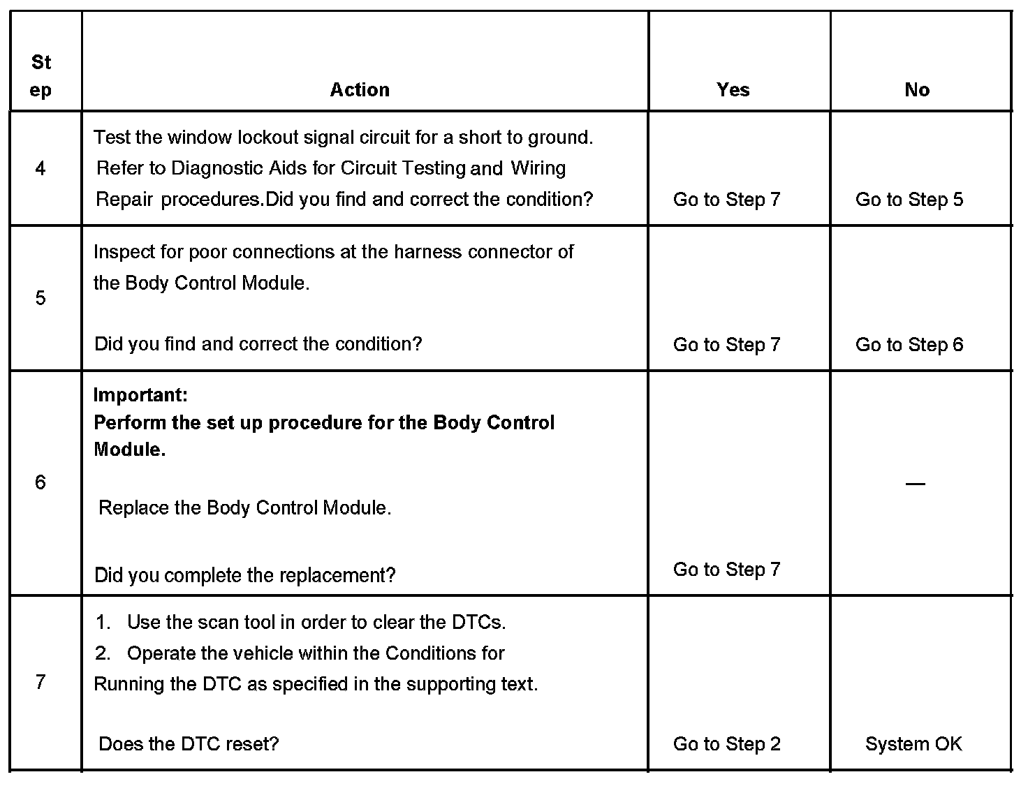 - The window lockout function is disabled and the window lockout signal circuit is shorted to ground.