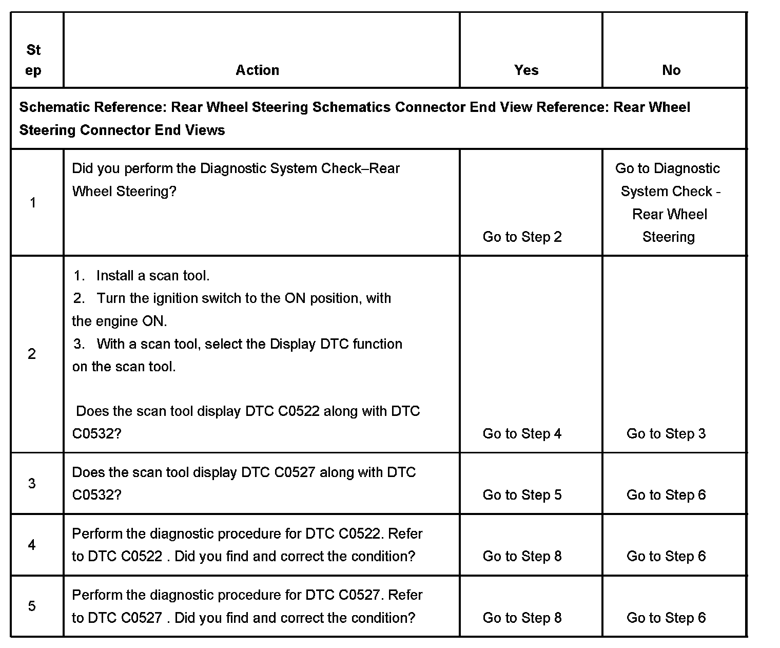 4. This step performs the diagnostic procedure for the rear steering position sensor.