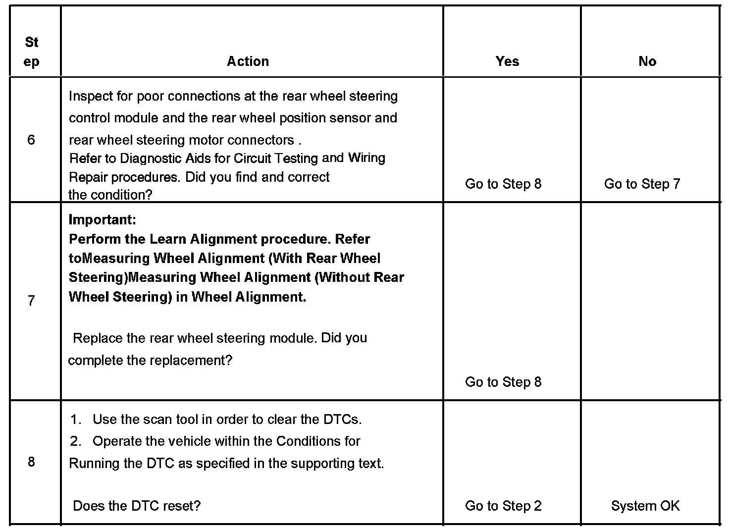 - The rear wheel steering control module receives a clear code command from the scan tool.