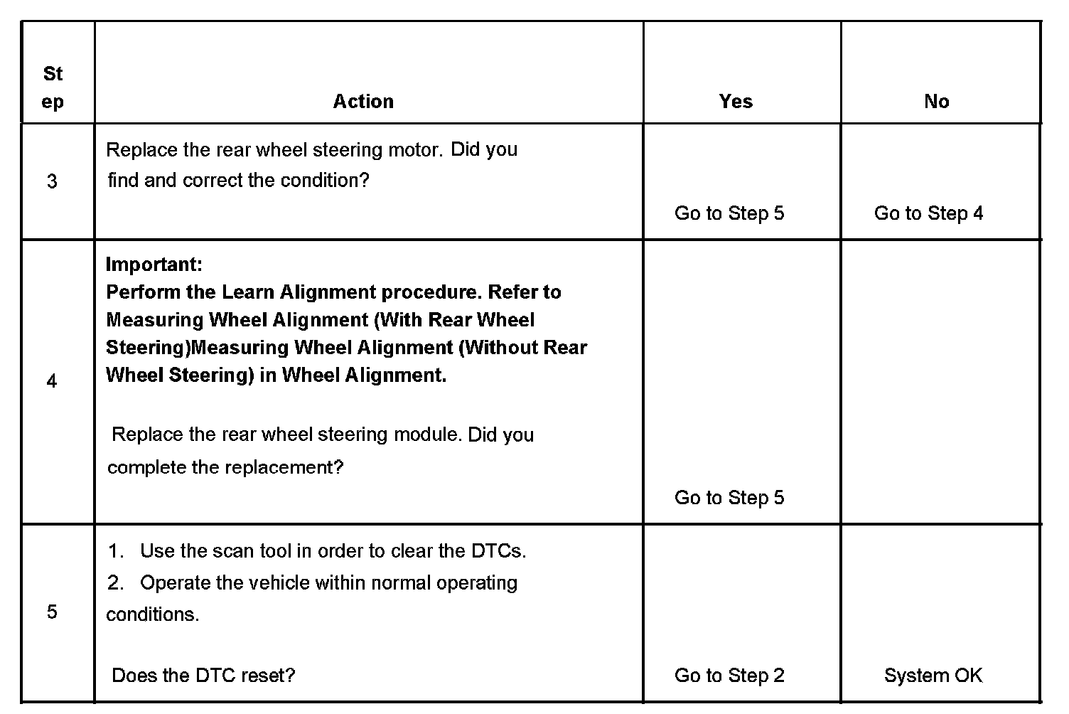 - The rear wheel steering control module receives a clear code command from the scan tool.