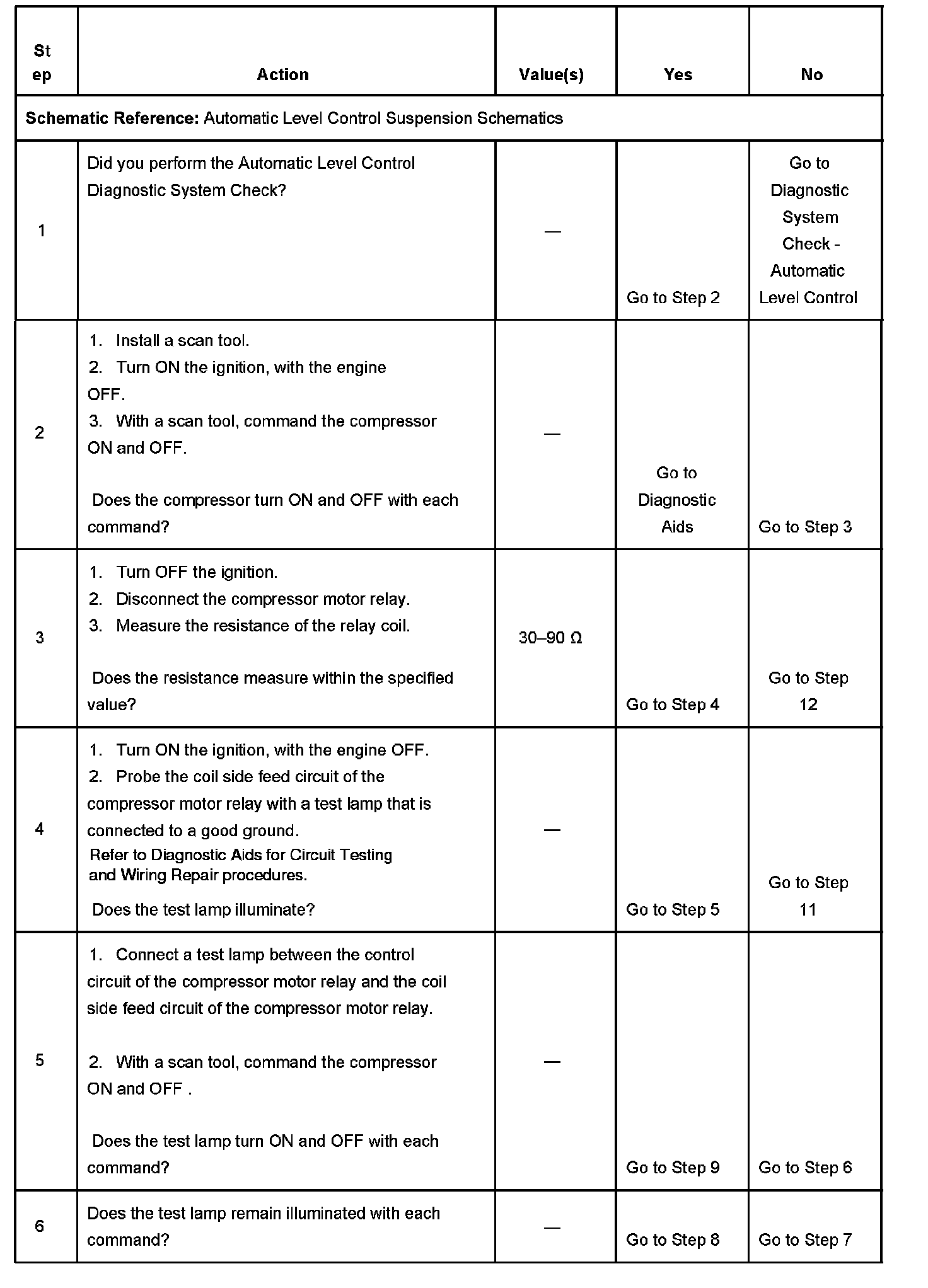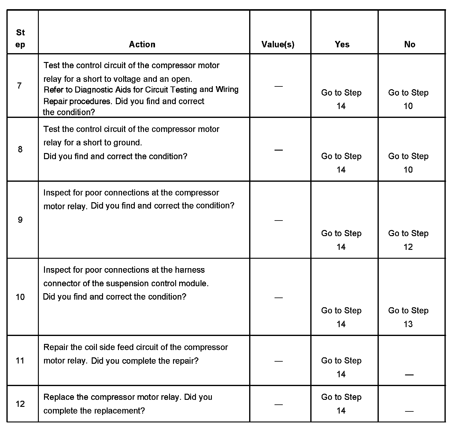 - The suspension control module no longer detects a open, short to ground, or a short to battery in the control circuit of the compressor motor relay.