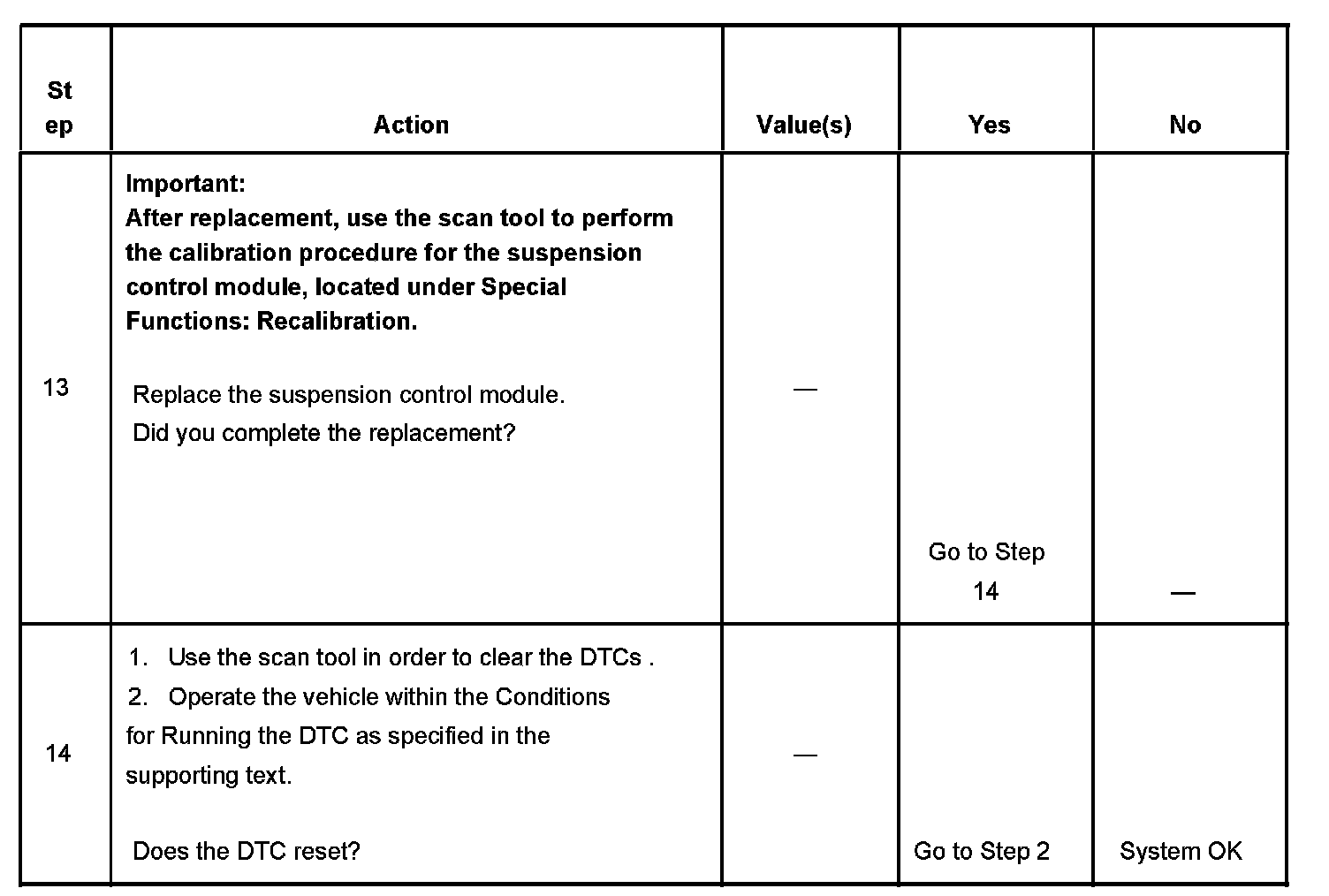 13. The replacement suspension control module must be calibrated.