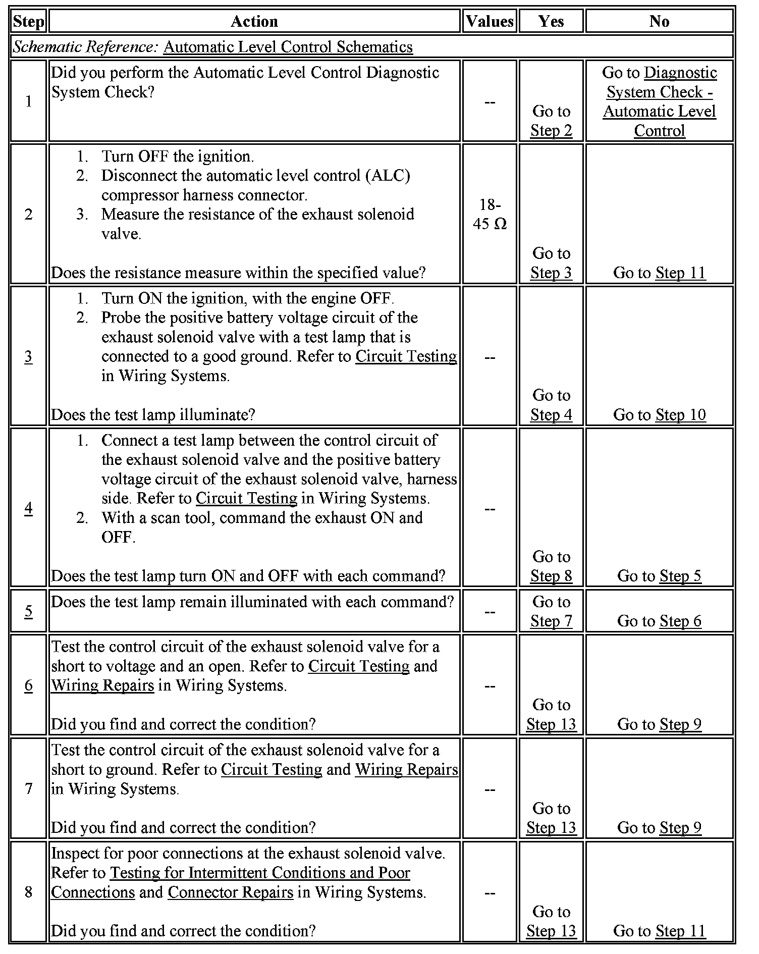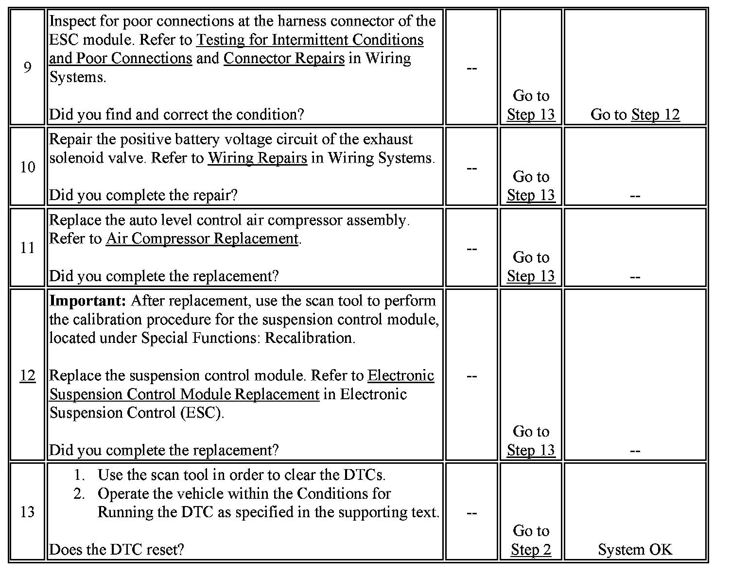 - The suspension control module no longer detects a open, short to ground, or a short to battery in the control circuit of the exhaust solenoid valve.