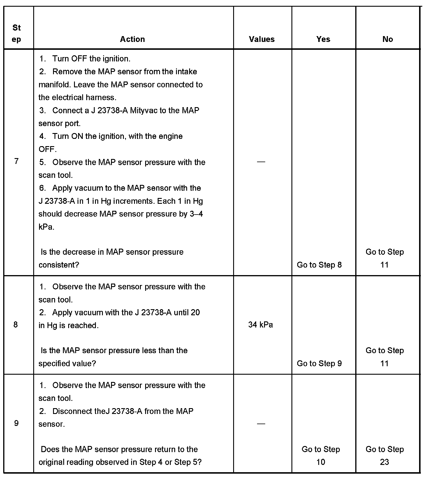 8. This step tests for a proper MAP sensor pressure with an applied vacuum.