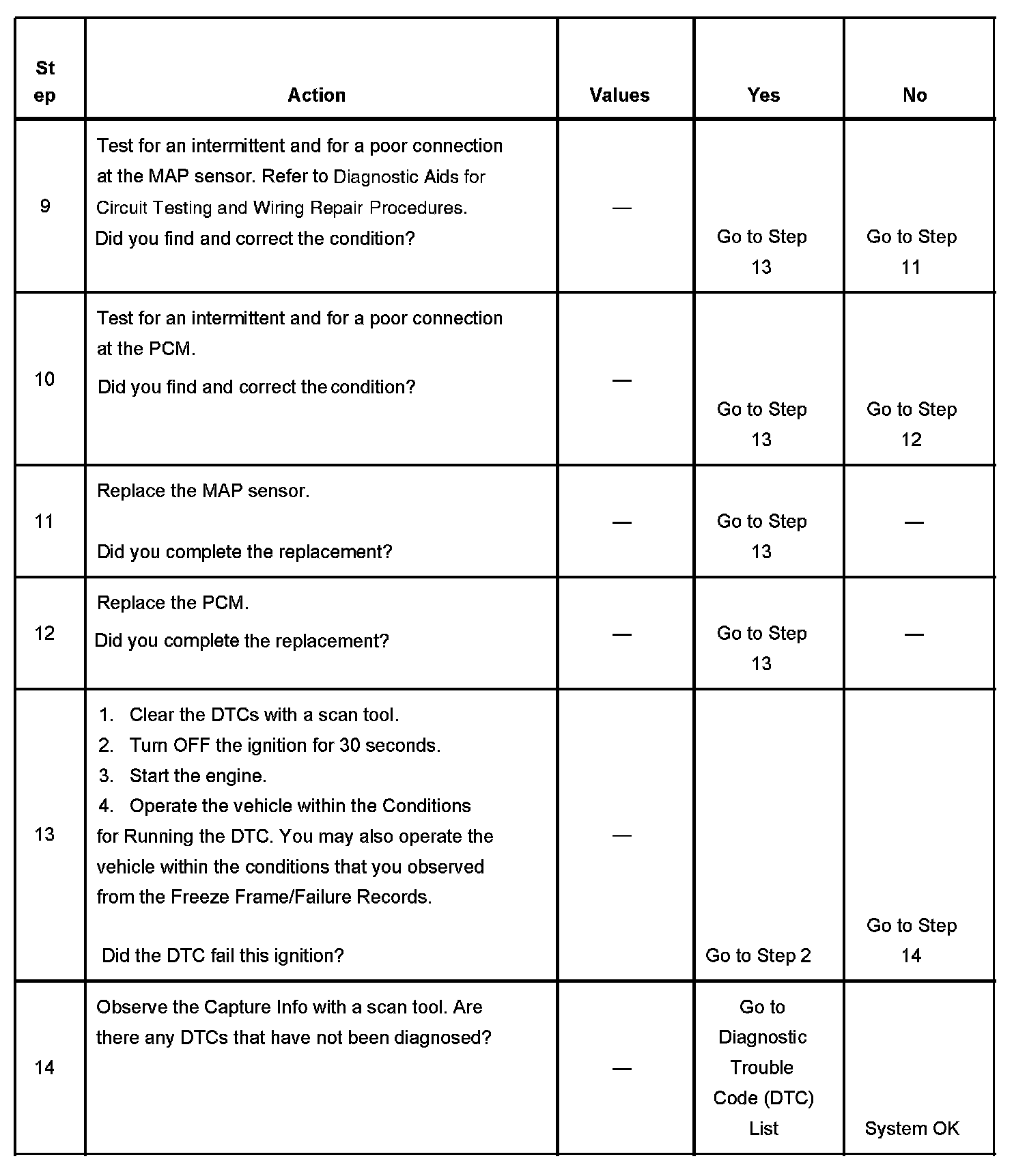 The number below refers to the step number on the diagnostic table.