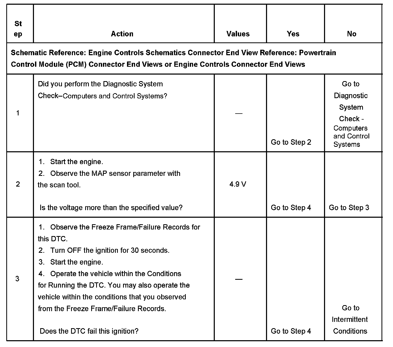 The PCM detects that the MAP sensor voltage is more than 4.9 volts for more than 2 seconds.