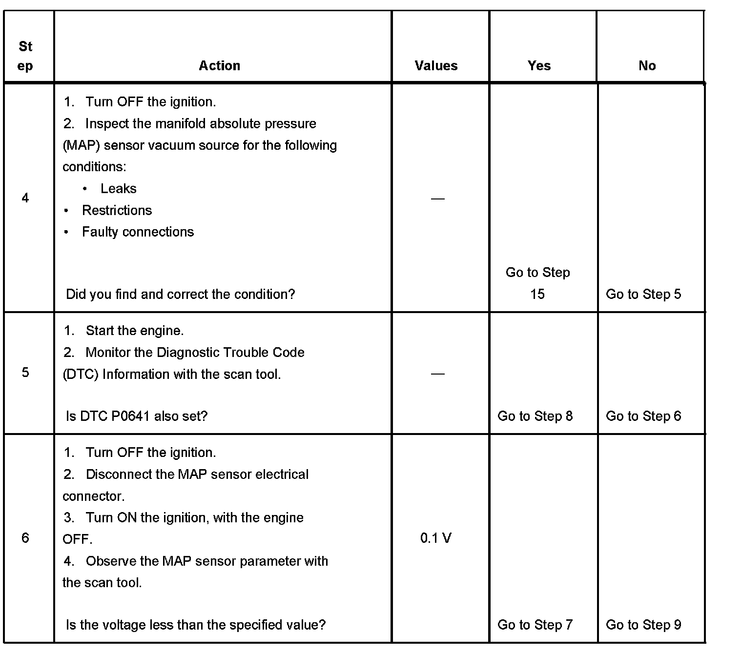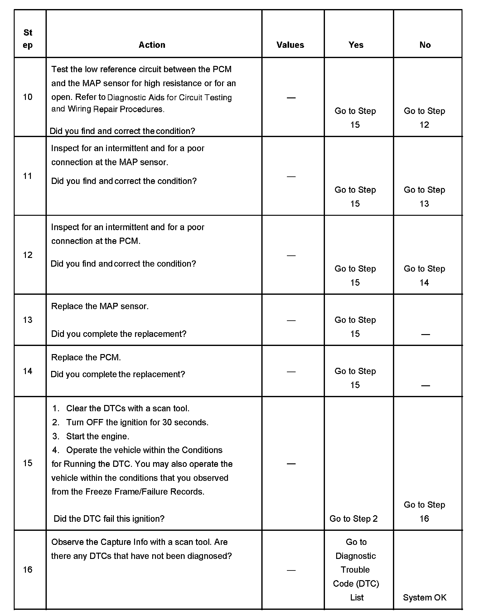 The number below refers to the step number on the diagnostic table.