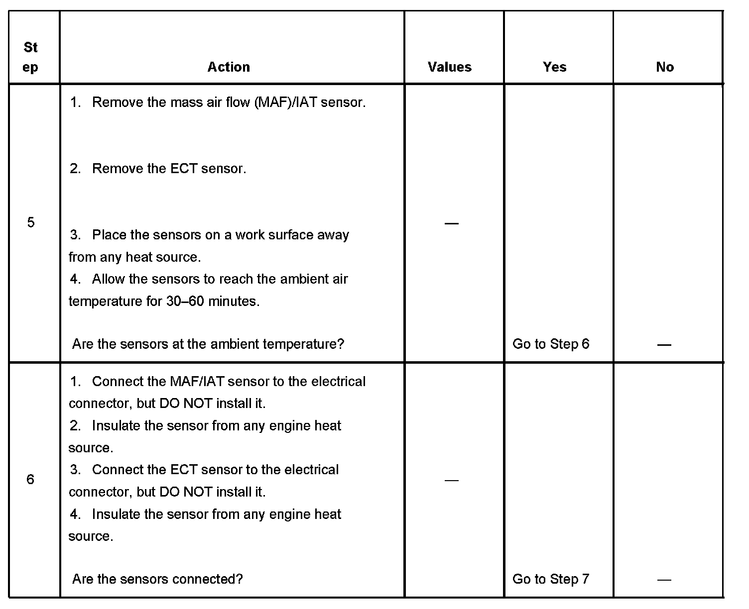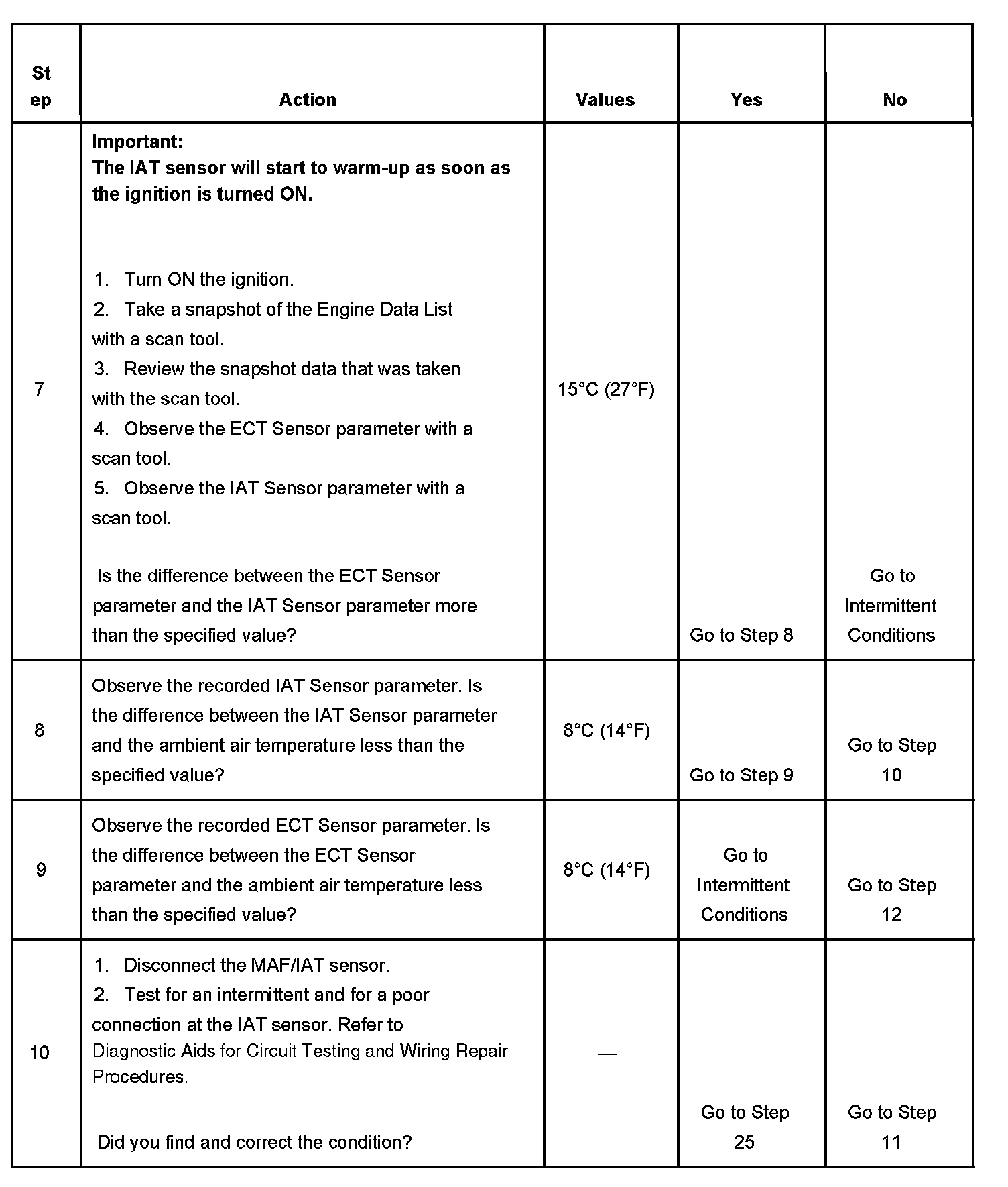- DTCs P0112, P0113, P0117, P0118, P0125, P0128, P0601, P0602, P1621, P1683 are not set.