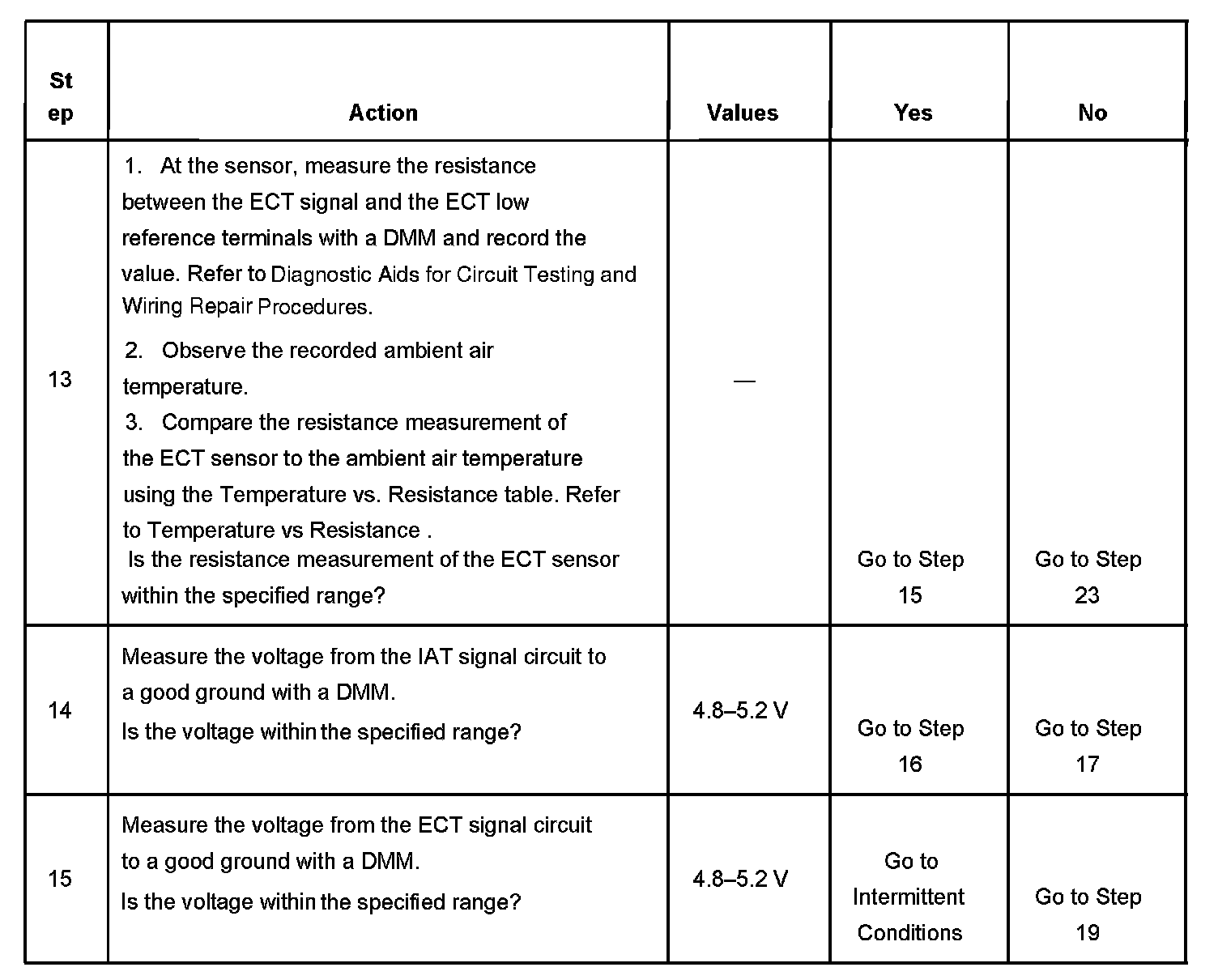 12. A high resistance short from the signal circuit to the low reference circuit can cause this DTC to set.