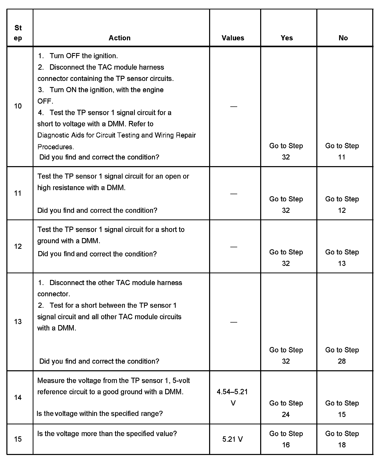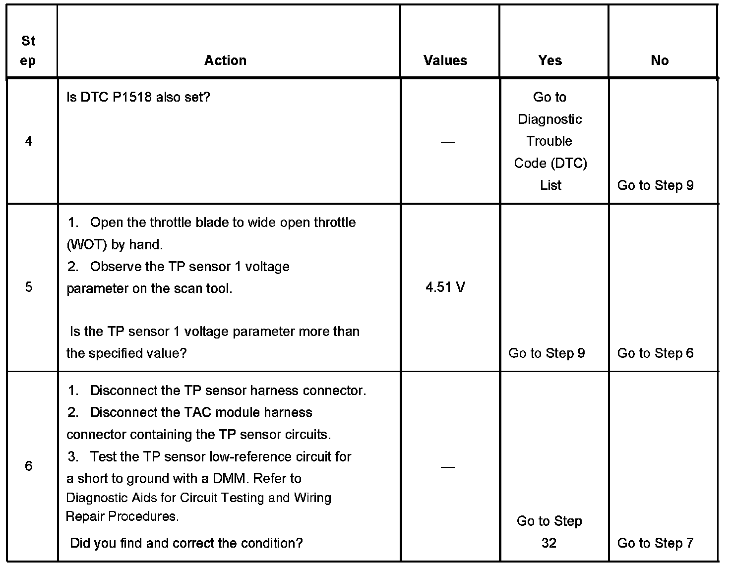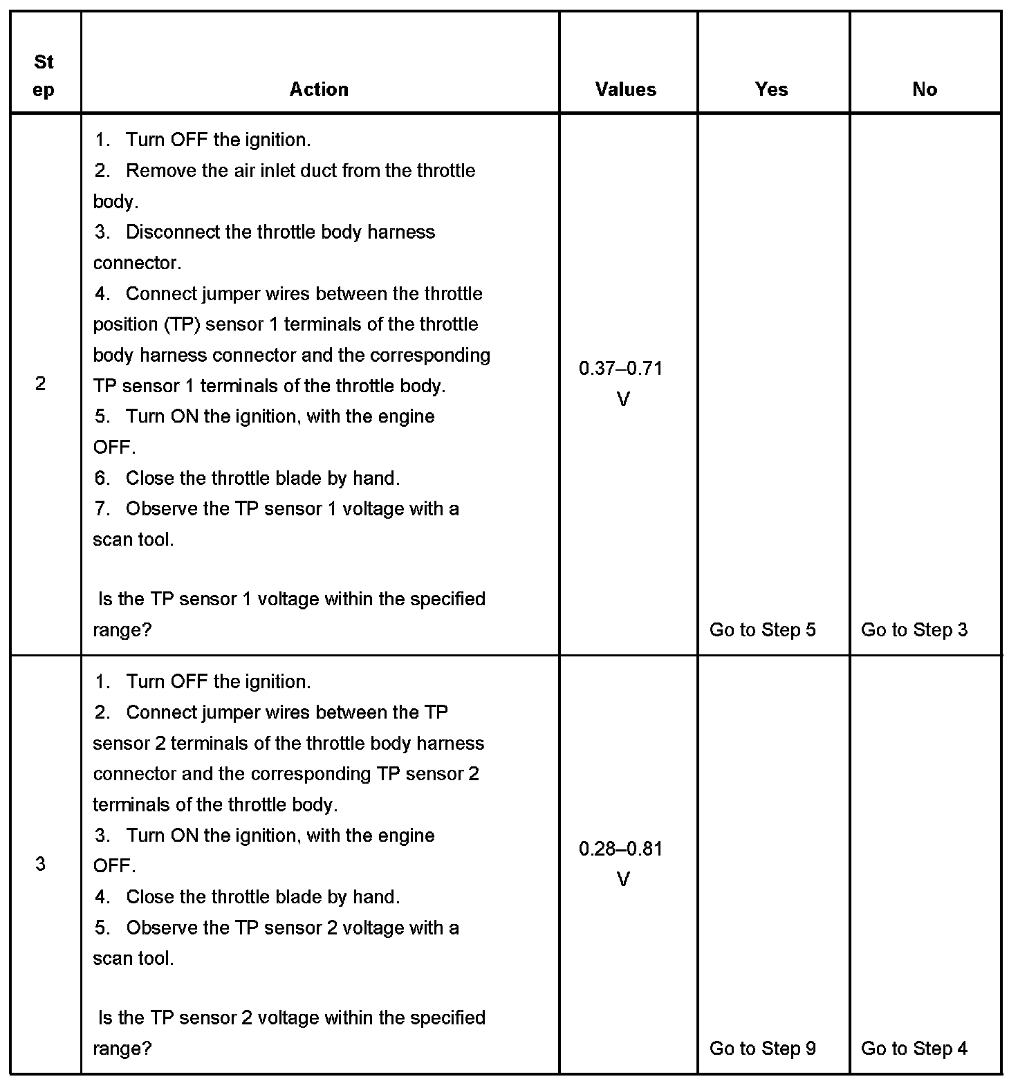 - The TP sensor 1 signal voltage is less than 0.37 volt or more than 4.51 volts.