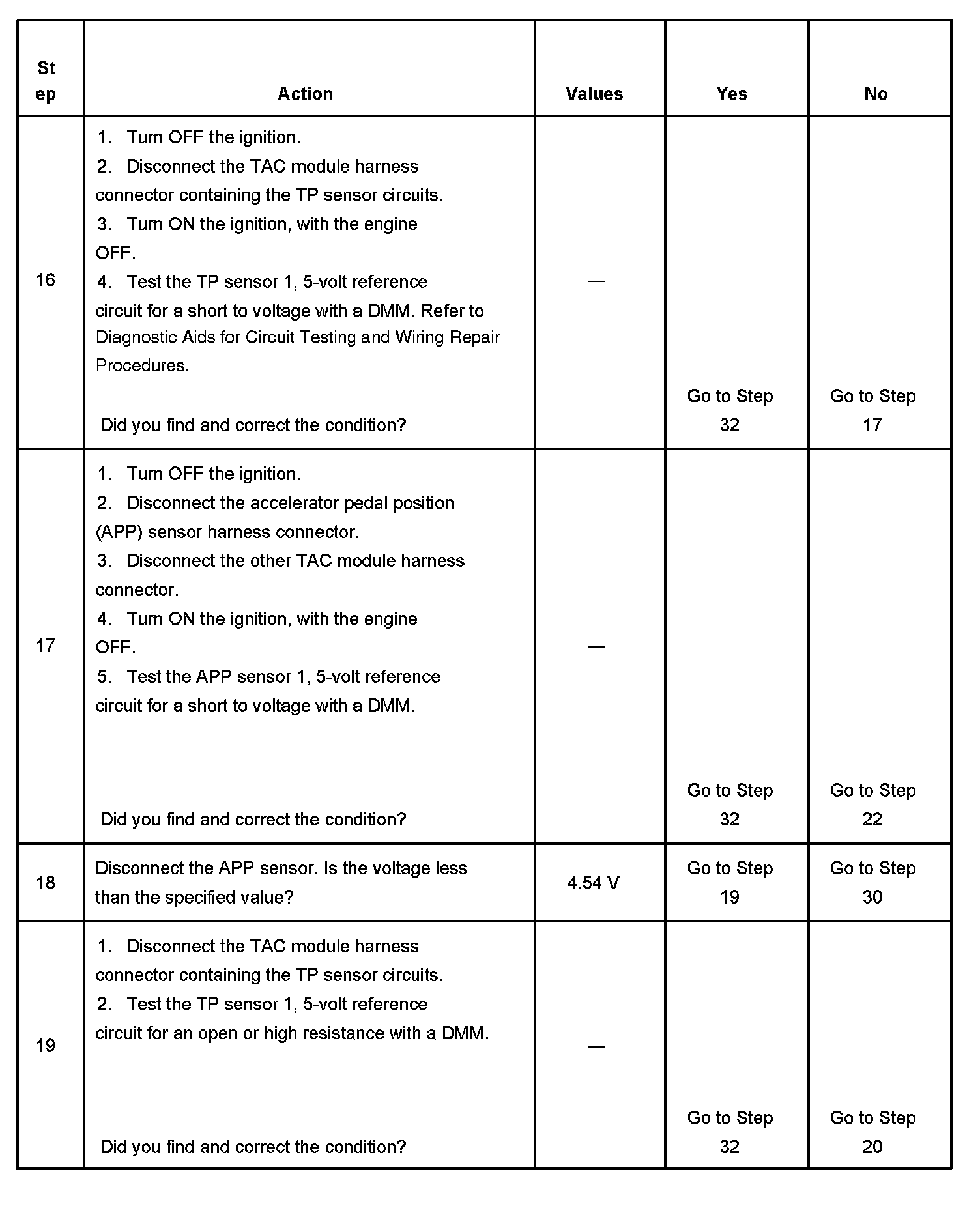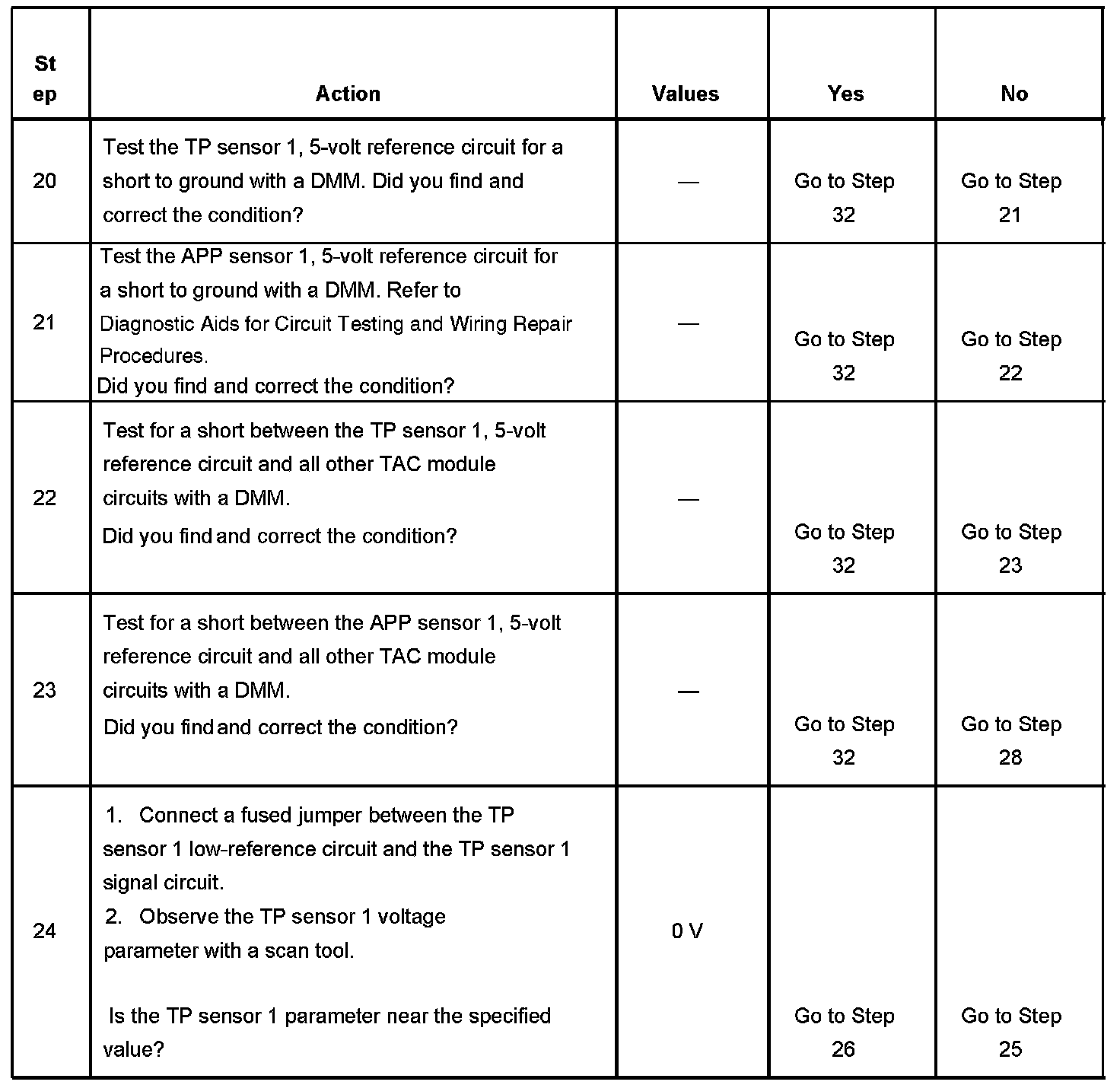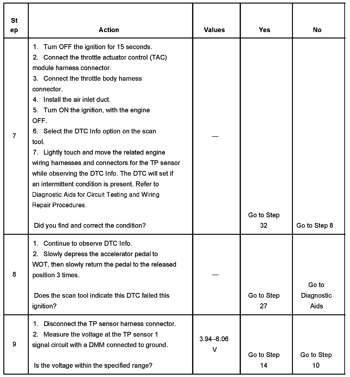 - The TP sensor 1 signal voltage is less than 0.37 volt or more than 4.51 volts.