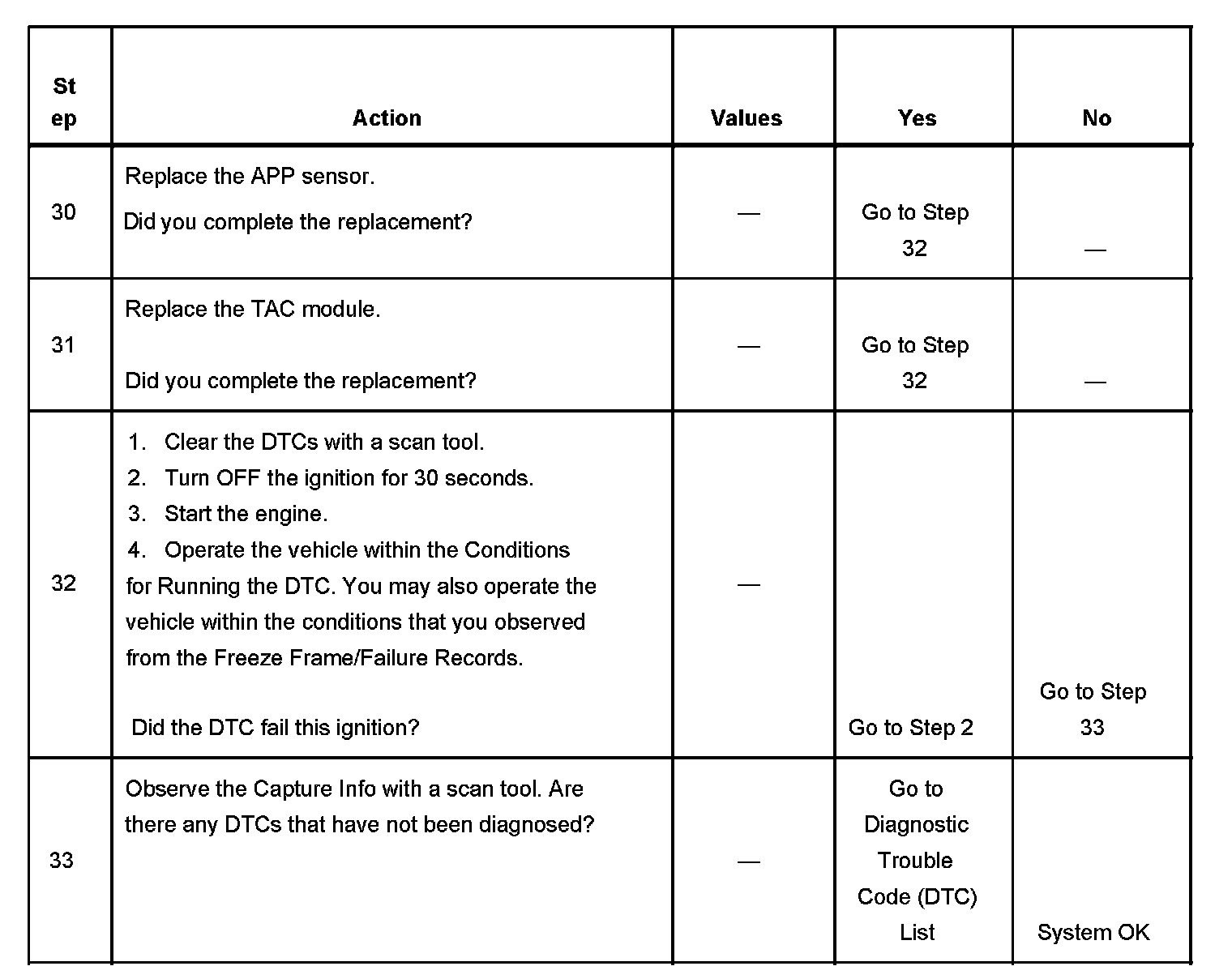 33. When the TAC module detects a condition within the TAC system, more than one TAC system related DTC may set. This is due to the many redundant tests run continuously on this system. Locating and repairing one individual condition may correct more than one DTC. Disconnecting components during testing may set additional DTCs. Keep this in mind when reviewing the stored information, Capture Info.