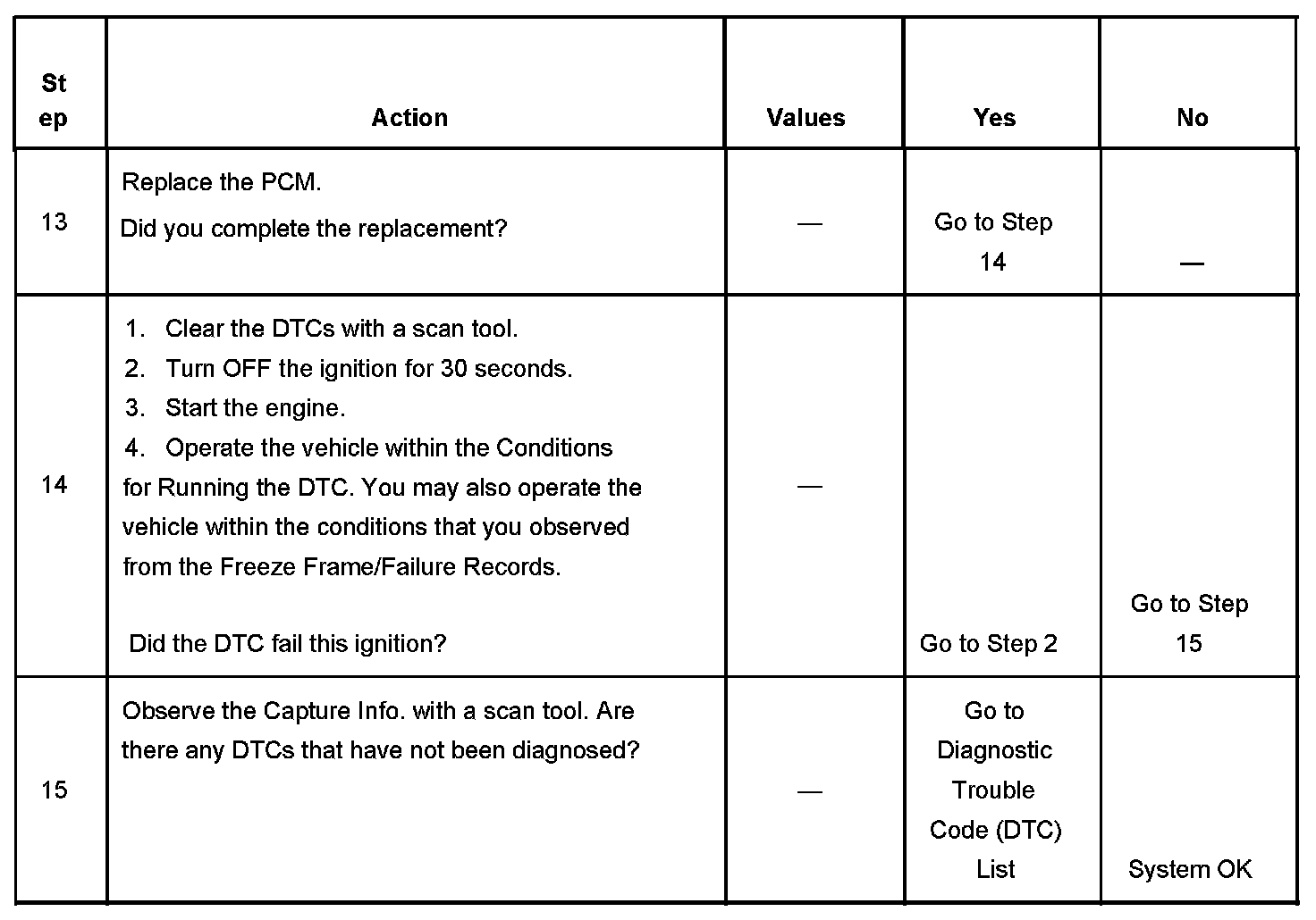 - A current DTC, Last Test Failed, clears when the diagnostic runs and passes.