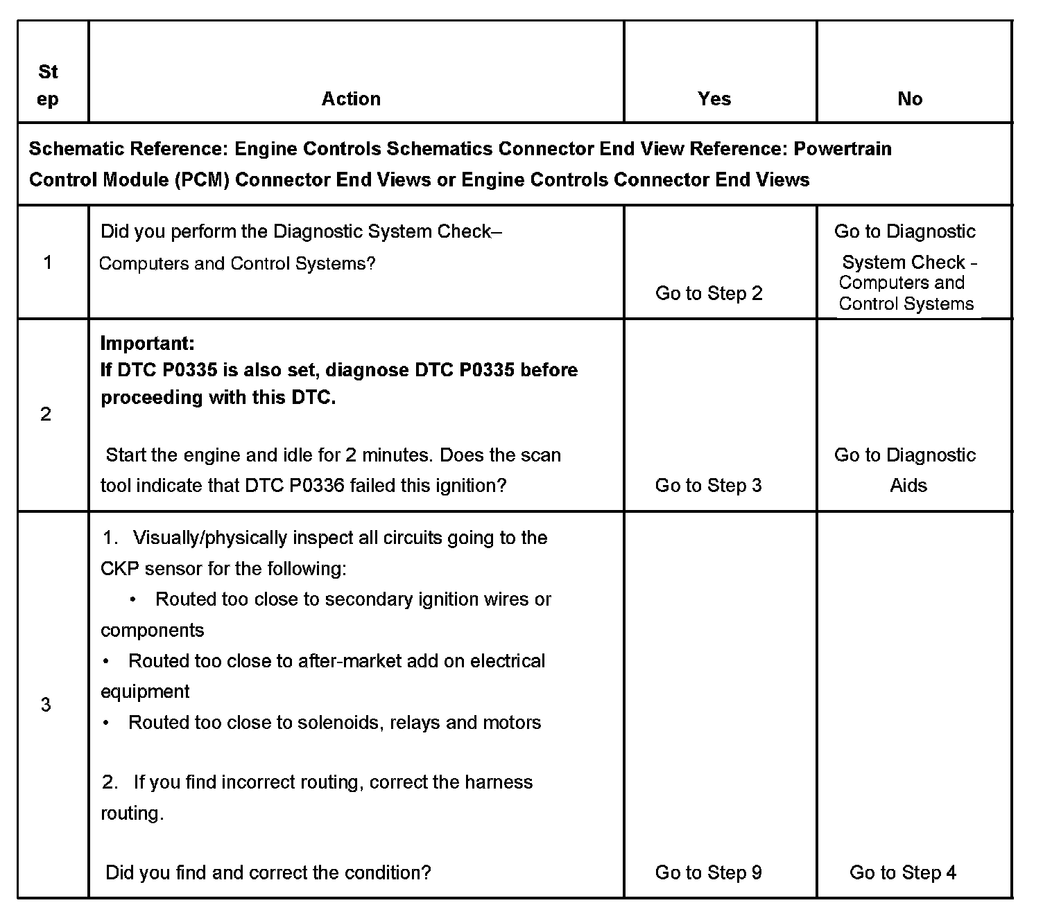 If the PCM detects that the CKP sensor signal is incorrect for more than 120 seconds, DTC P0336 sets.