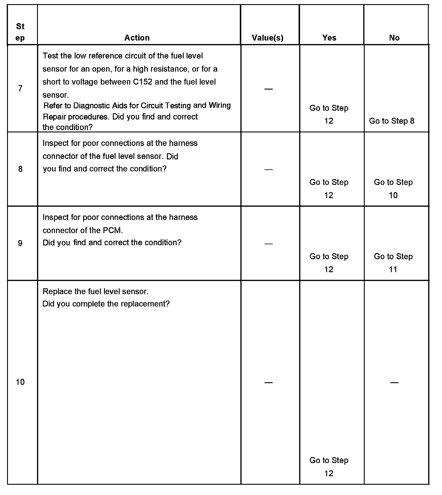 The number below refers to the step number on the diagnostic table.