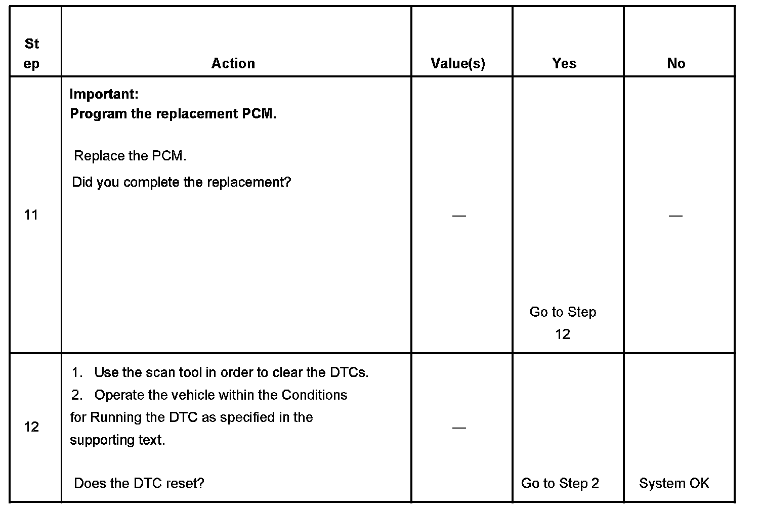 - The PCM receives the clear code command from the scan tool.