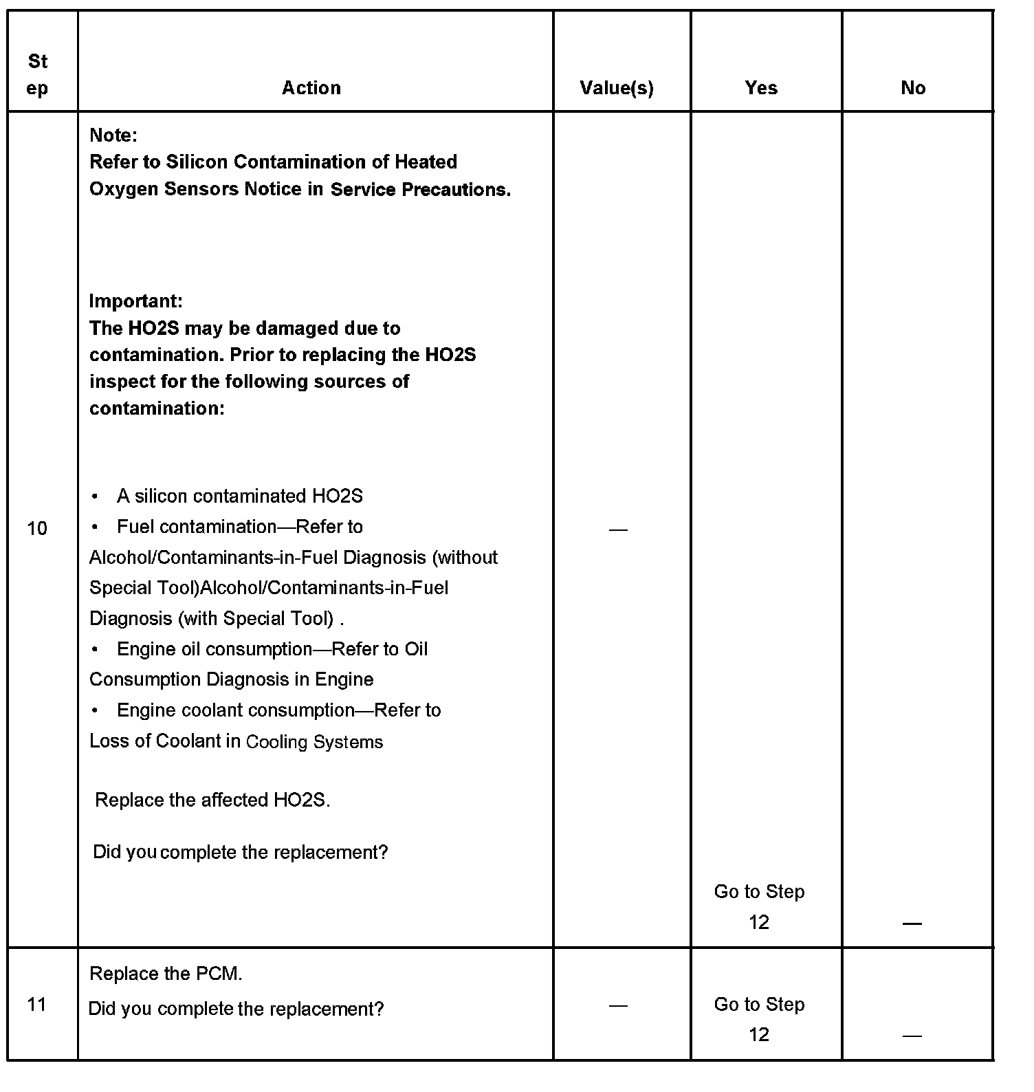 The number below refers to the step number on the diagnostic table.