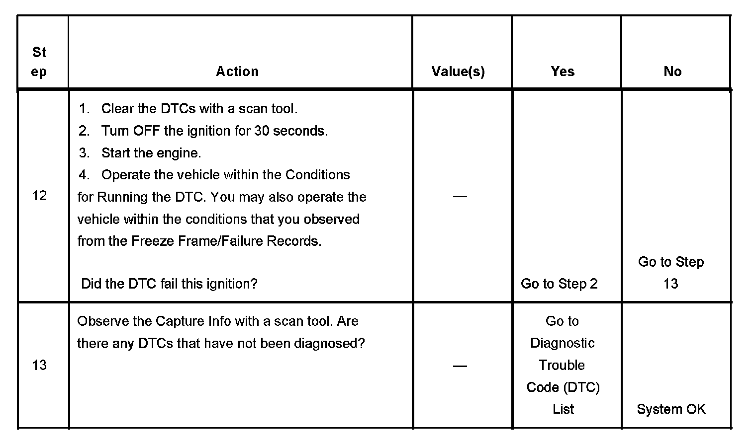 - A current DTC, Last Test Failed, clears when the diagnostic runs and passes.