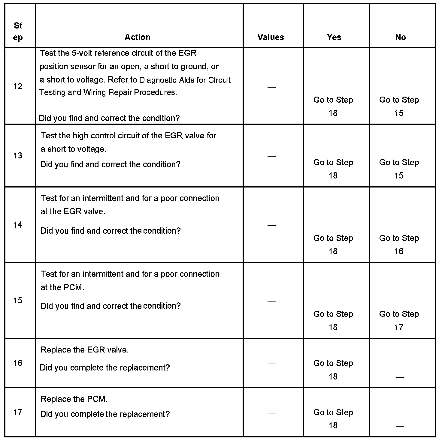 - The EGR position sensor parameter is more than 30 percent and is steady for 2 seconds after a test failure and before the next test will be run.