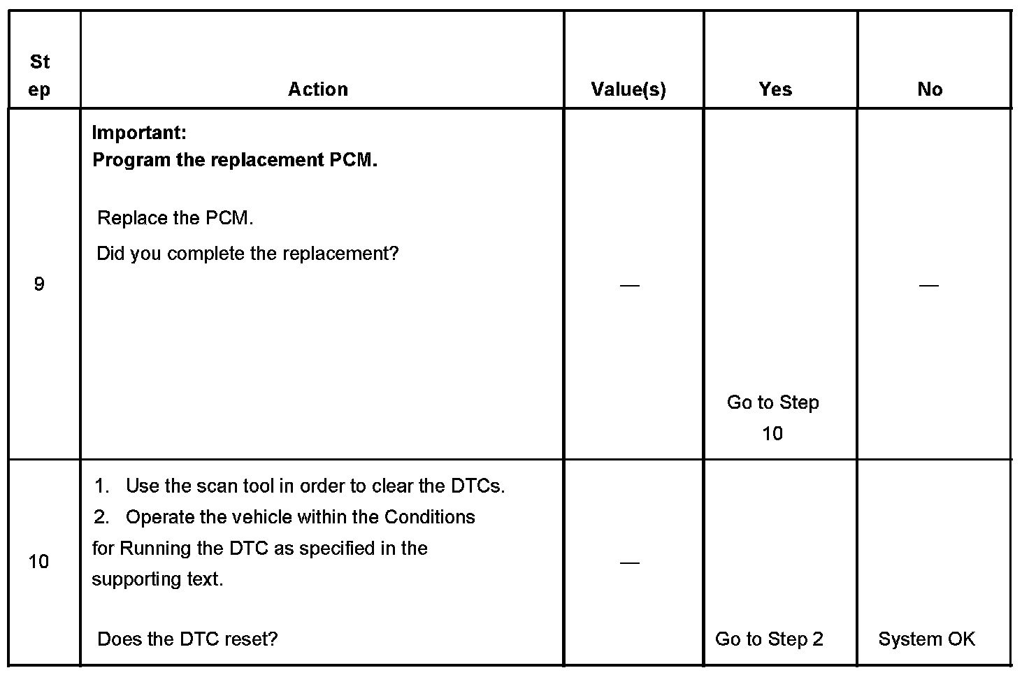 - The PCM receives the clear code command from the scan tool.