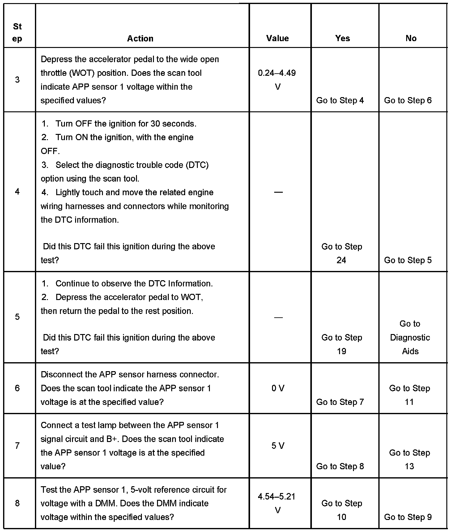 - The APP sensor 1 voltage is less than 0.24 volts or more than 4.49 volts.