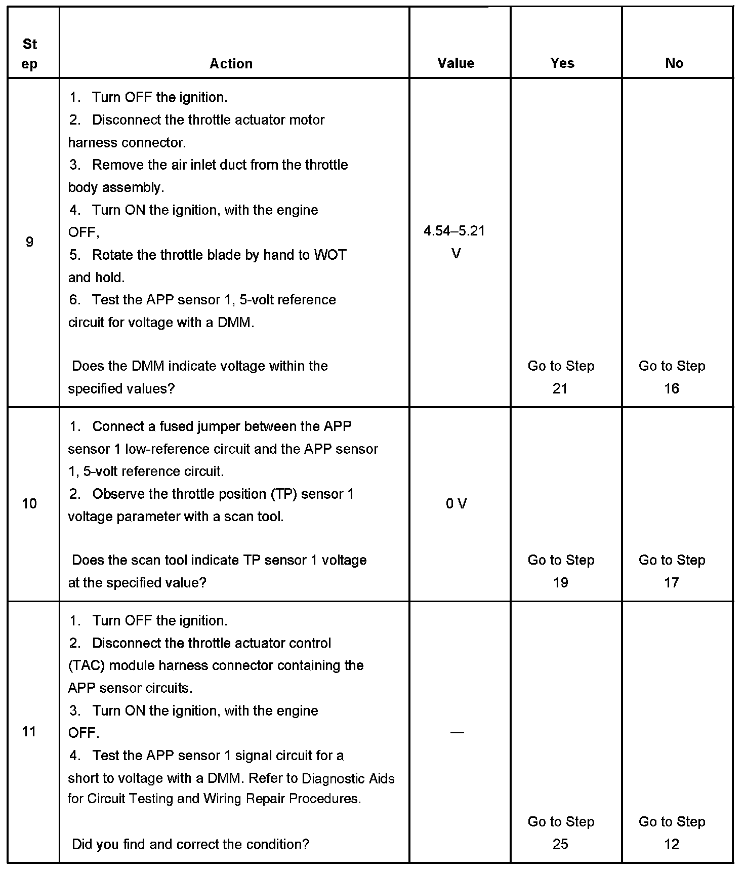 - The APP indicated angle is limited to 0 percent. The control module only allows the engine to idle.