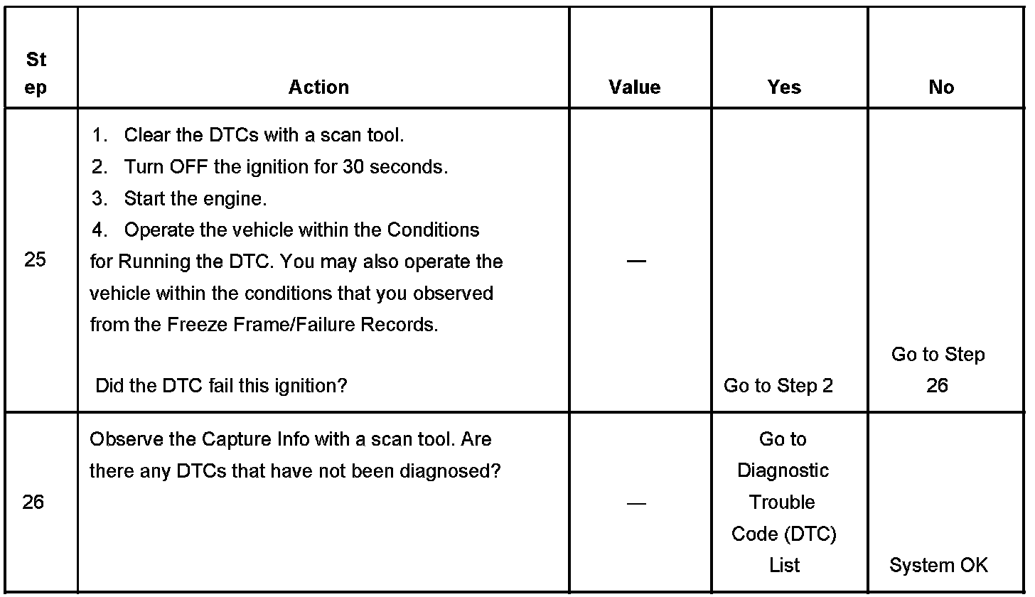 - A current DTC Last Test Failed clears when the diagnostic runs and passes.