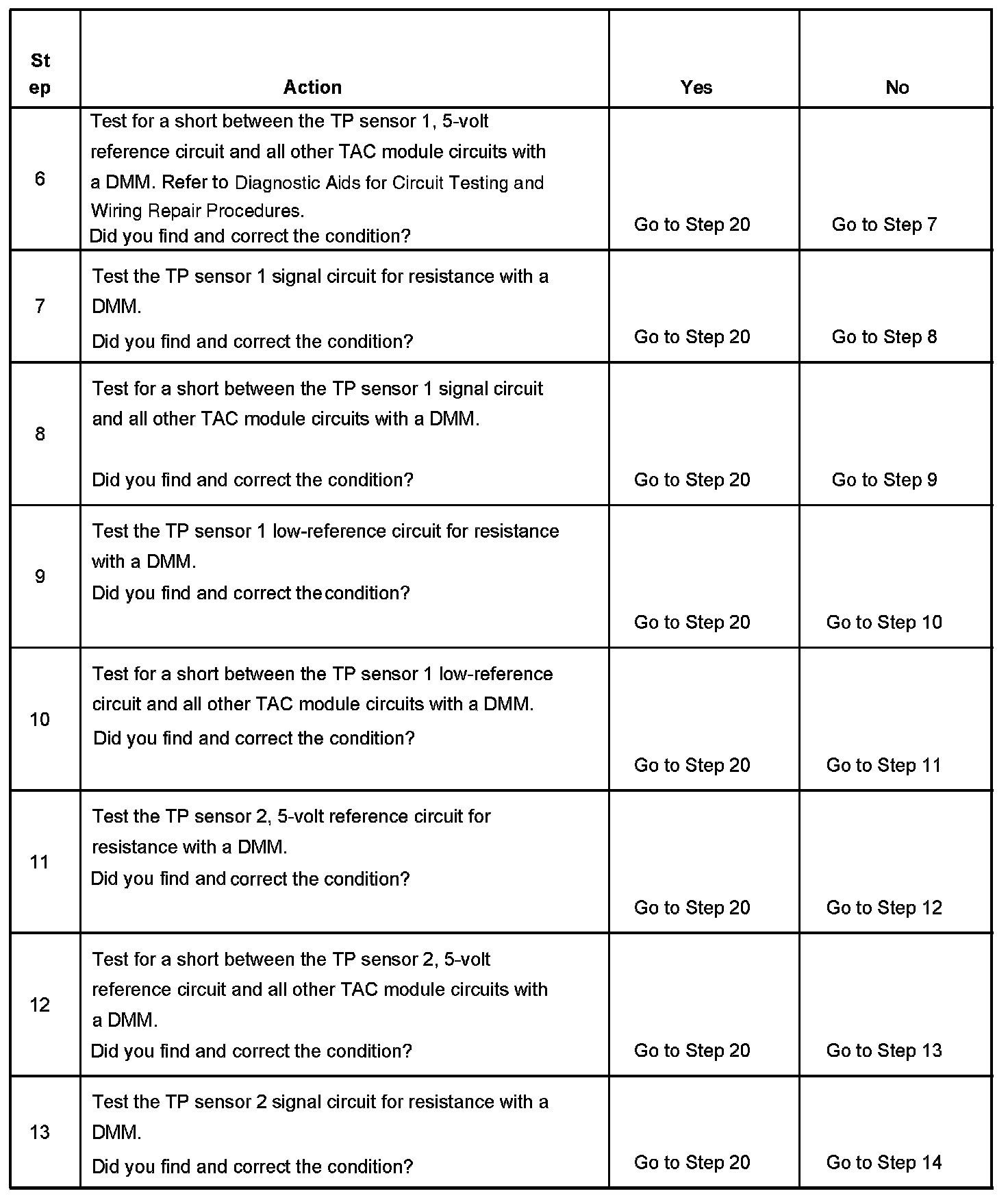 The number below refers to the step number on the diagnostic table.