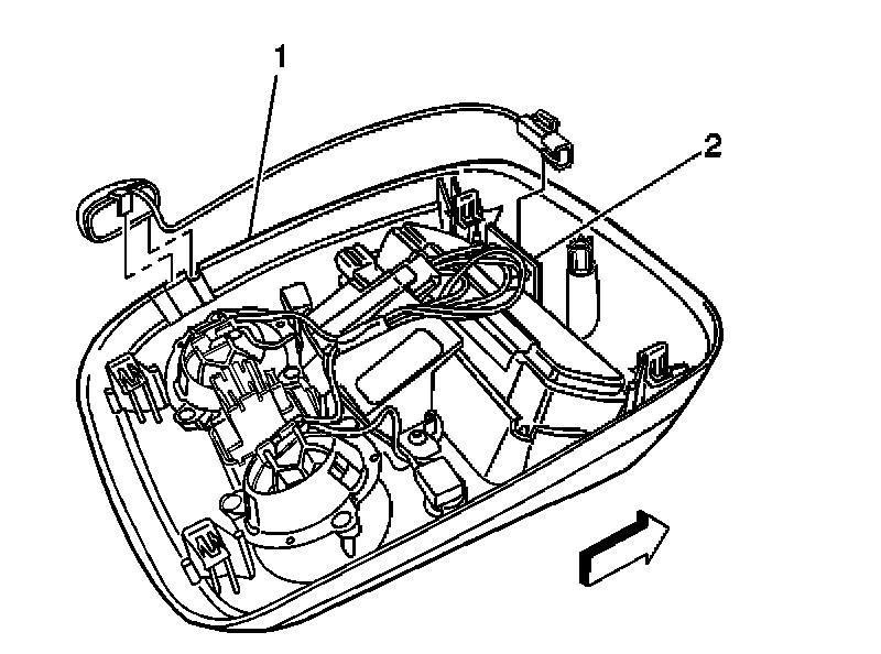 1. Mount the microphone (1) to the overhead console at the left rear corner of the overhead console.