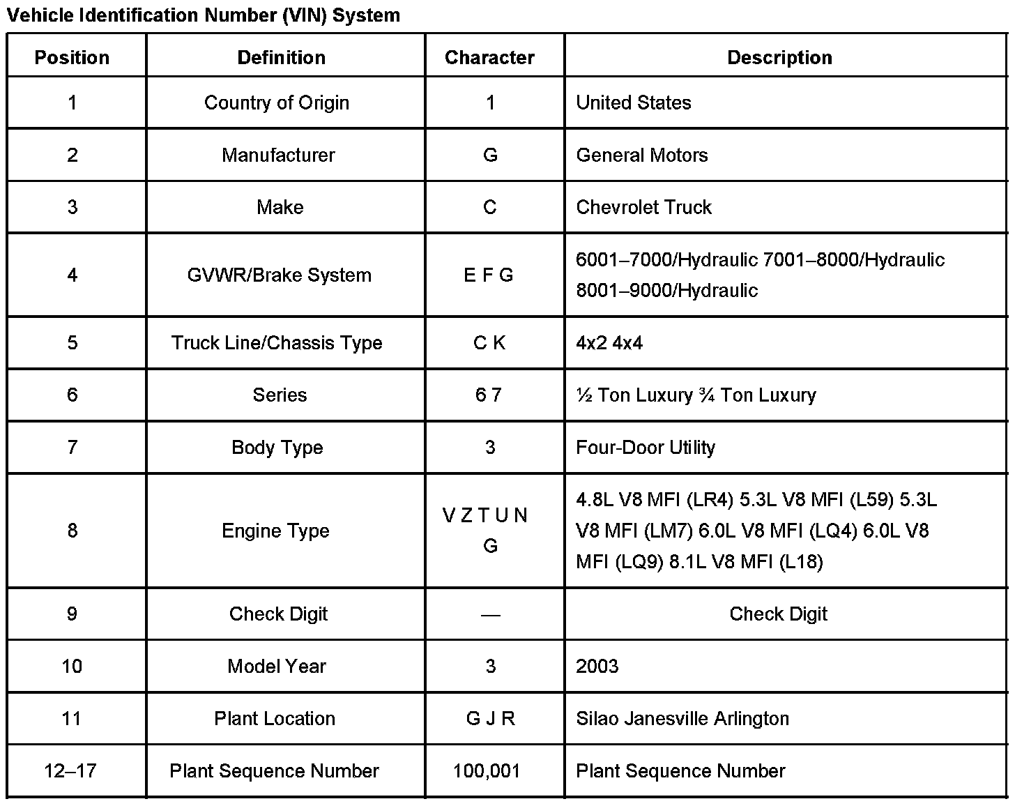 Vehicle Identification Number (VIN) System: