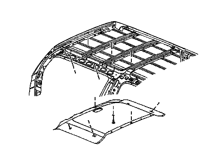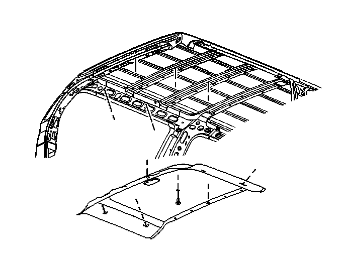 HEADLINER REPLACEMENT - REARCAUTION: Do not attempt to repair or alter the head impact energy-absorbing material glued to the headliner or to the garnish trims. If the material is damaged, replace the headliner and/or the garnish trim. Failure to do so could result in personal injury.