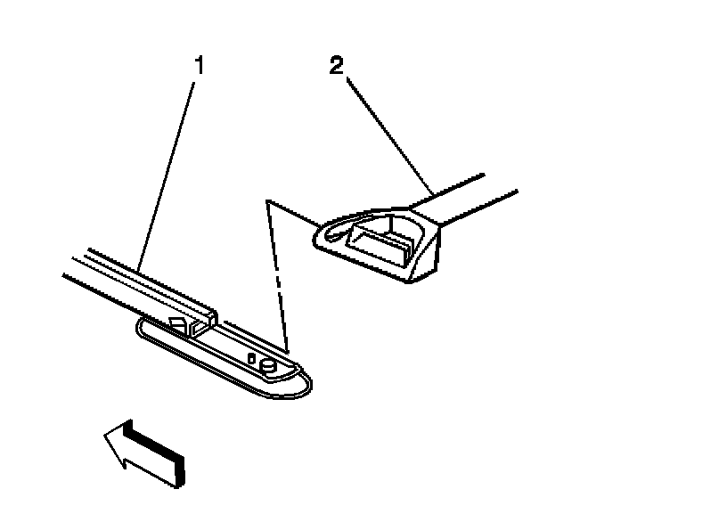 4. Install the front cross rail assembly (2) to the side rails (1), stopping at the second or third notch from the front of each rail.