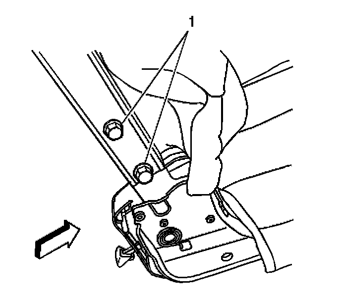 2. Remove the bolts (1) that retain the seat back frame to the hinge assembly.