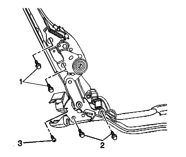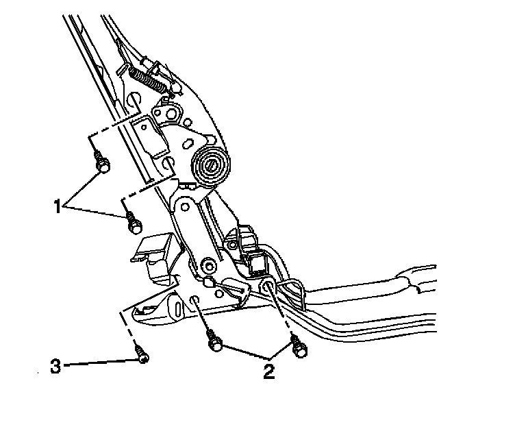 6. Install the screw (3) that retains the latch assembly to the seat frame.