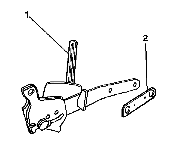 8. Remove the spacer (2) from the latch assembly, if equipped.