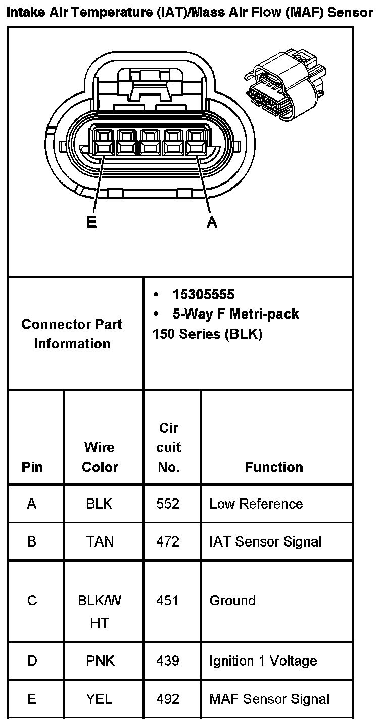 Intake Air Temperature (IAT)/Mass Air Flow (MAF) Sensor: