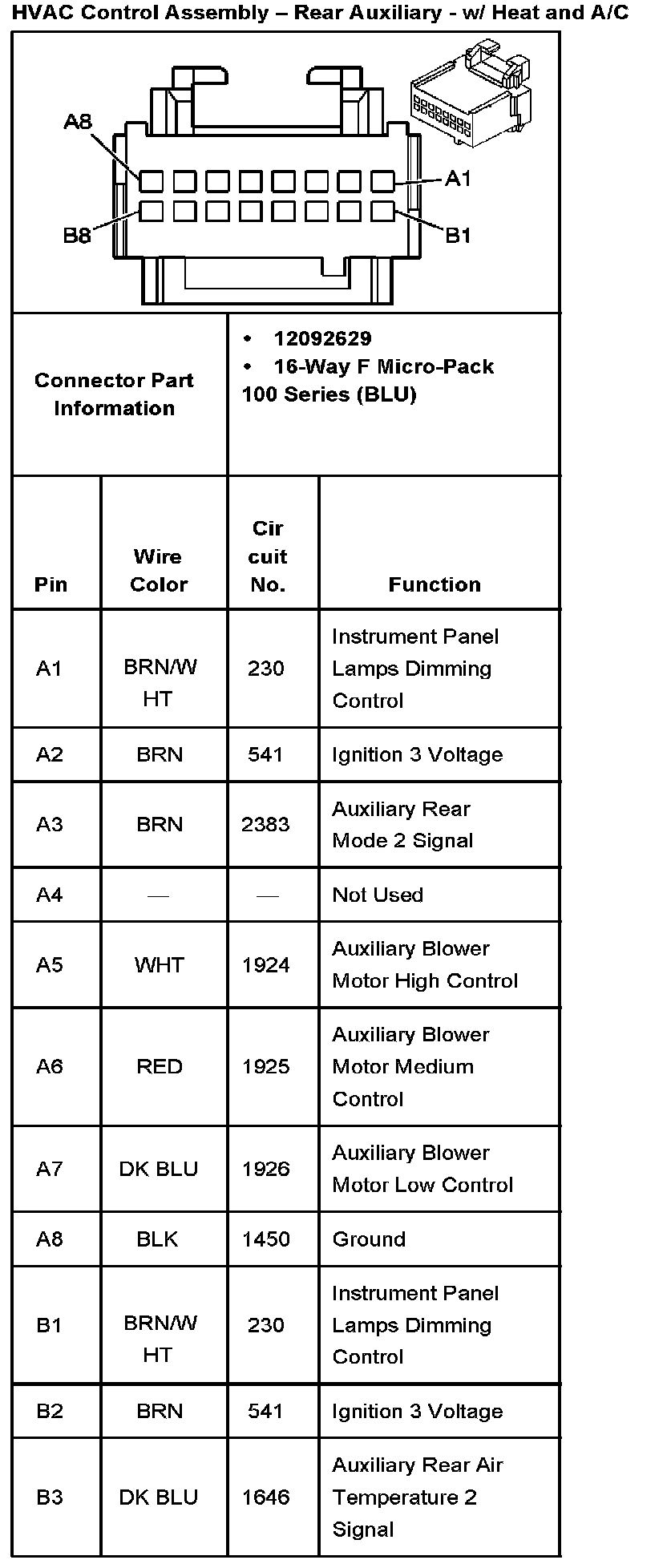 HVAC Control Assembly - Rear Auxiliary - W/ Heat And A/C Part 2: