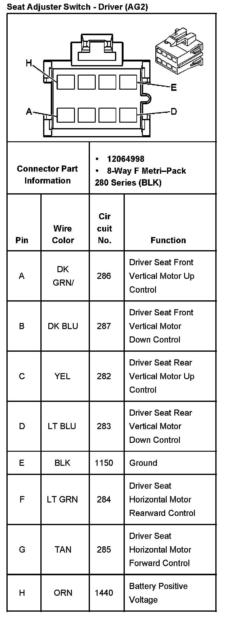 Seat Adjuster Switch - Driver (AG2):