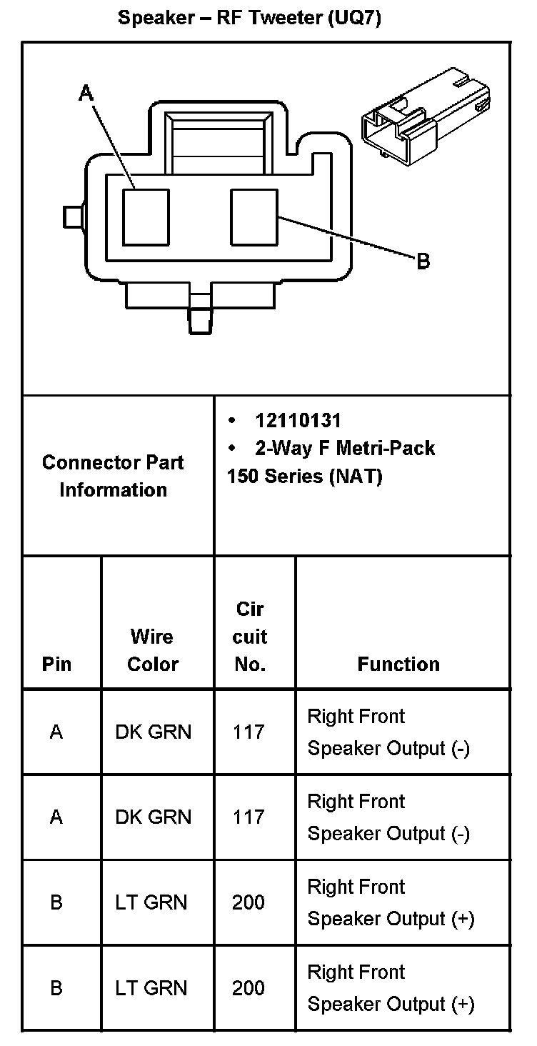 Speaker - RF Tweeter (With RPO Code UQ7):