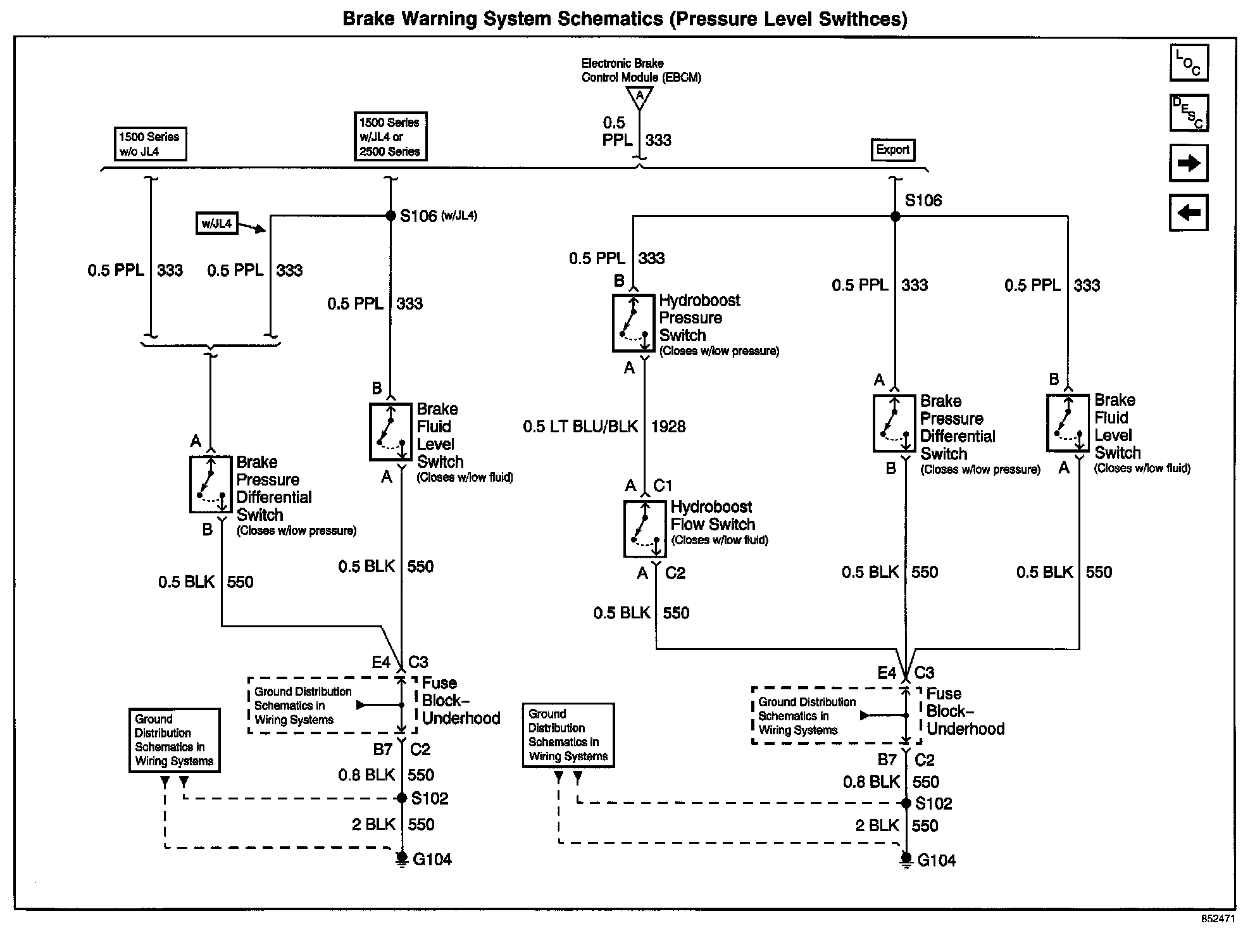 Brake Warning System Schematics (Pressure Level Switches):