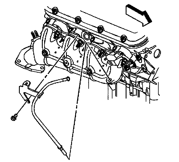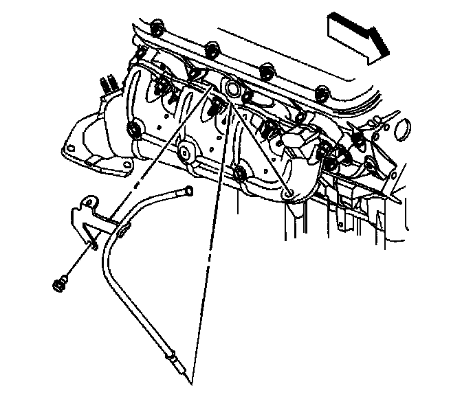 9. Remove the heater hose bracket bolts and bracket from the cylinder head.