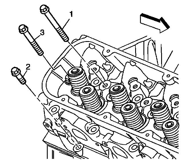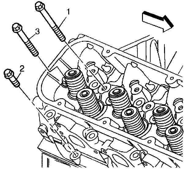 12. Remove and discard the cylinder head bolts (1, 2, and 3).