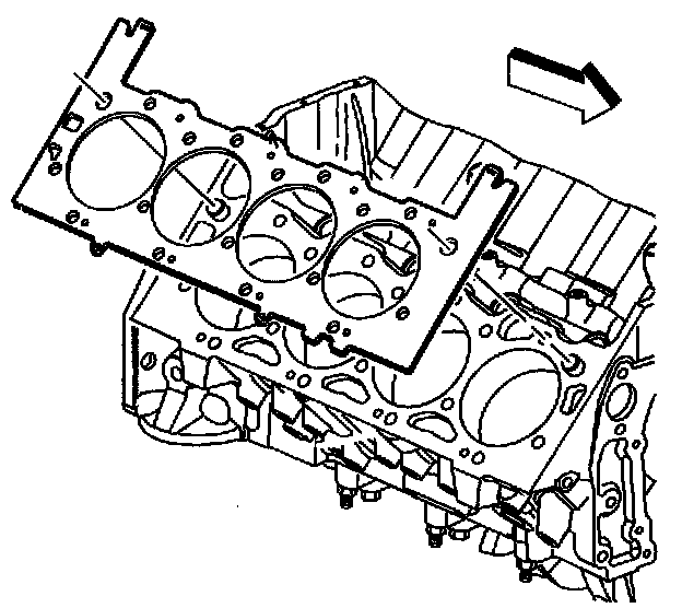 Important: Make sure the threaded holes in the engine block are clean and not damaged. Do not use sealer on any engines that use a composition type gasket. Align the cylinder head gasket locating mark to face up. Ensure that the head gasket tabs are located over the numbers 1 and 2 cylinders for correct installation.